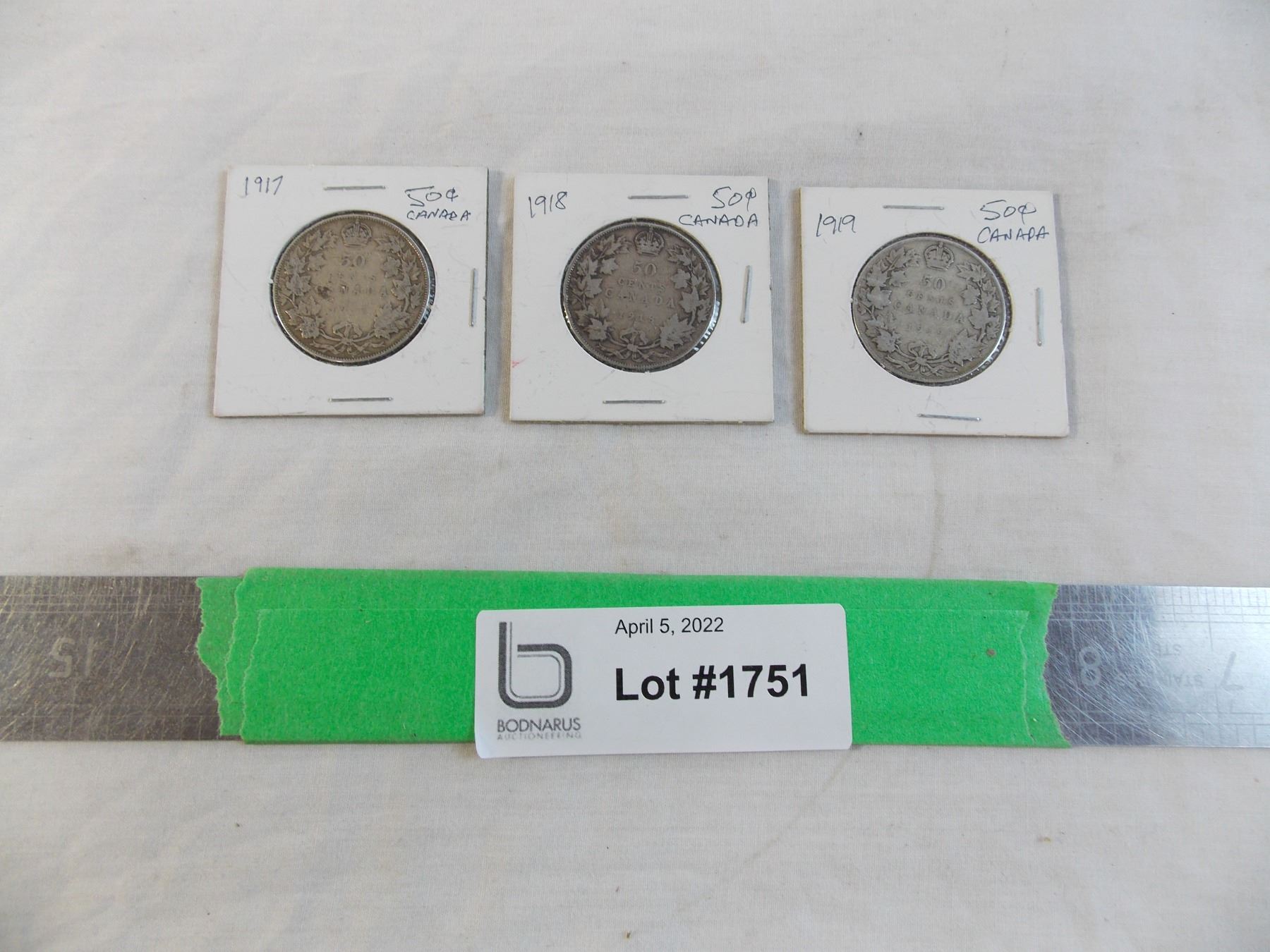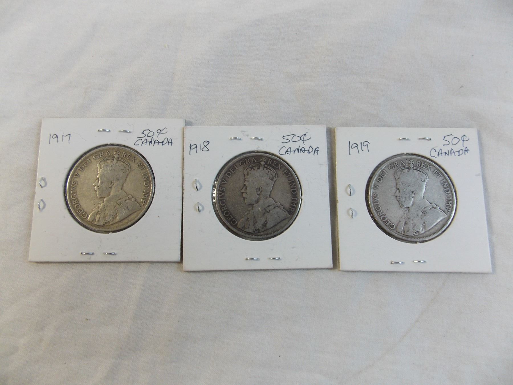 0.925 Silver 1917 + 1918 + 1919 - 50 cent pieces (Canada)