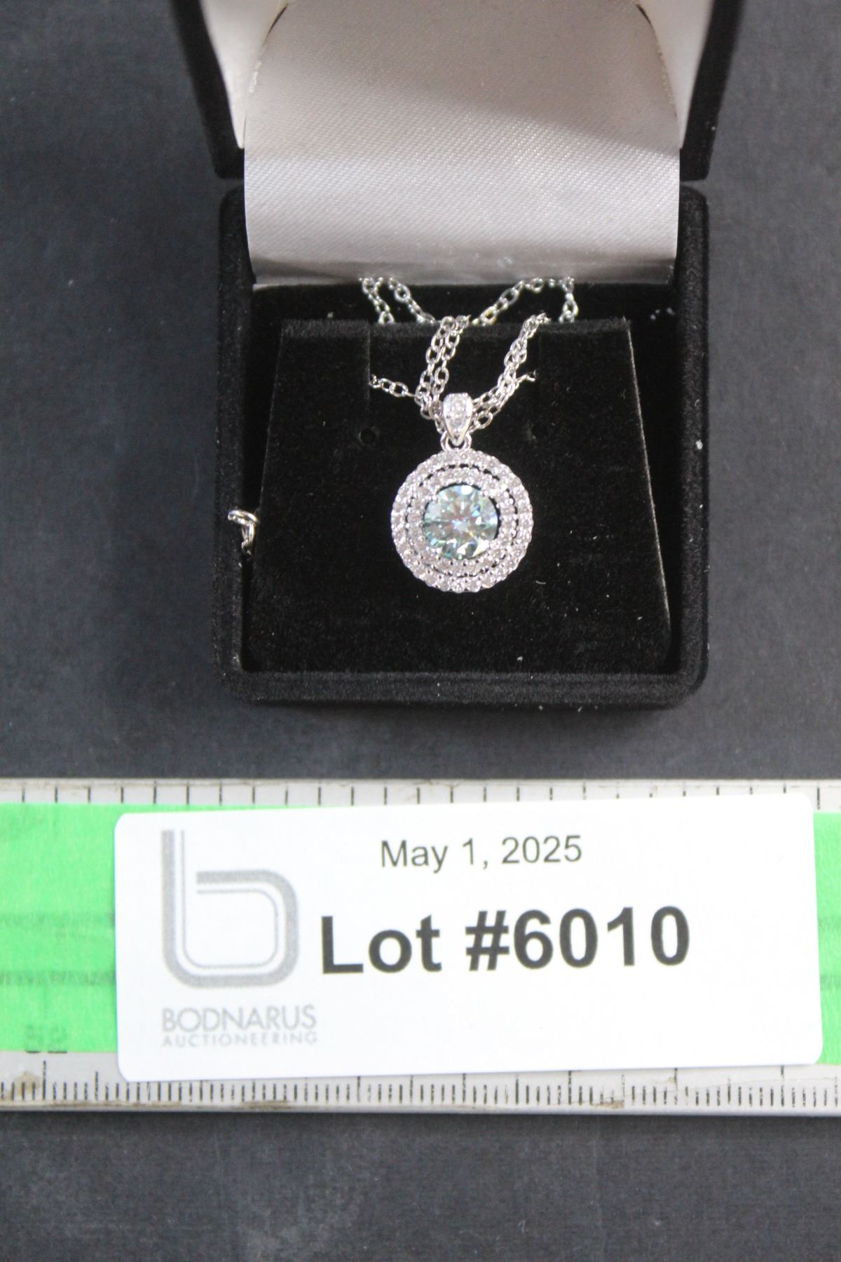 1.00 CT ROUND BRILLIANT CUT MOISSANITE STONE VVS LIGHT BLUE COLOR WITH 50 ROUND BRILLIANT CUT CUBIC ZIRCONIA SET IN DUAL ROUND HALOS WITH A FEW IN BALE SET IN 925 SILVER PENDANT RETAIL VALUE $1070