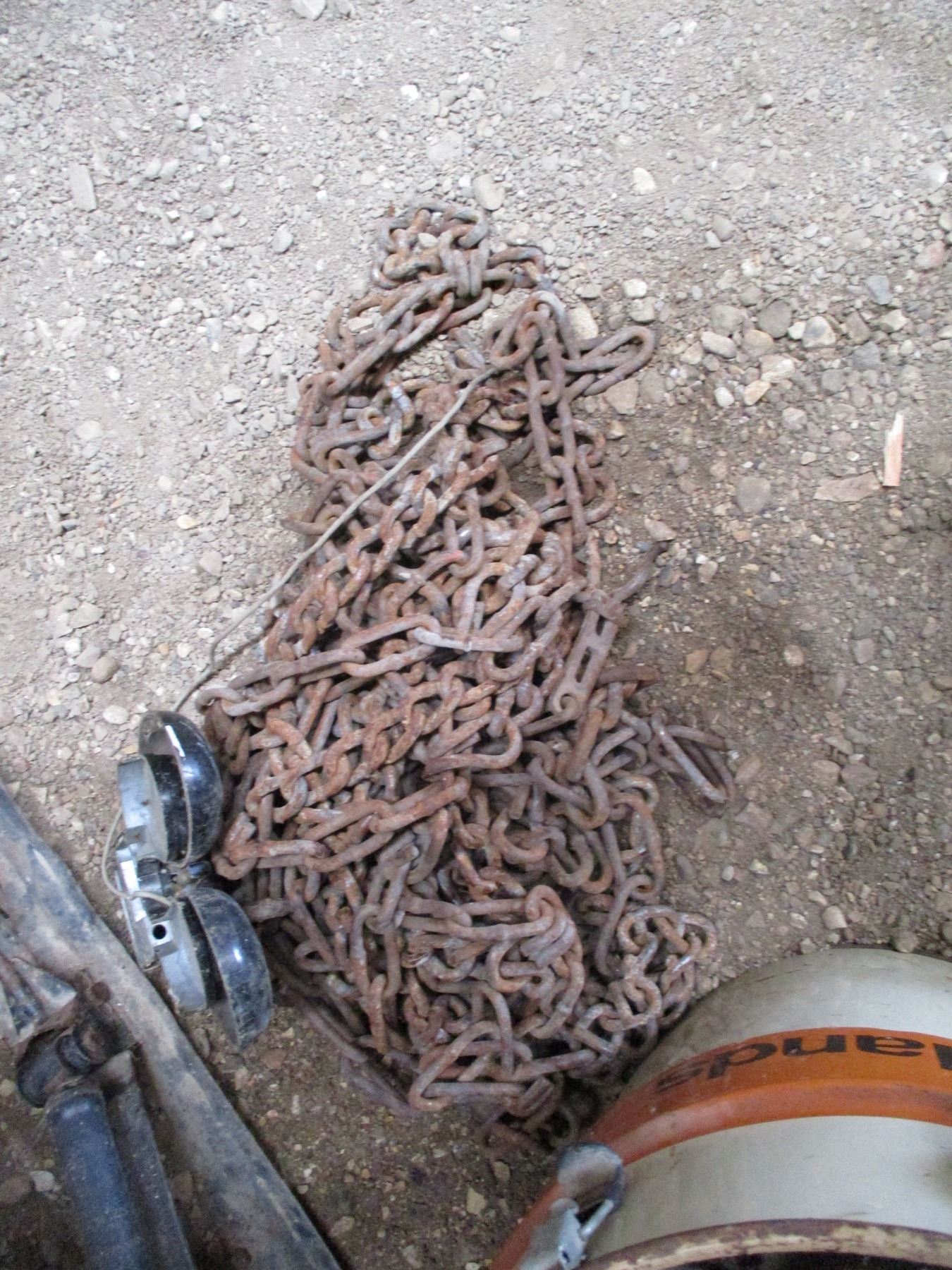 1 1/2 pail full muffler clamp plus rubbers, chain