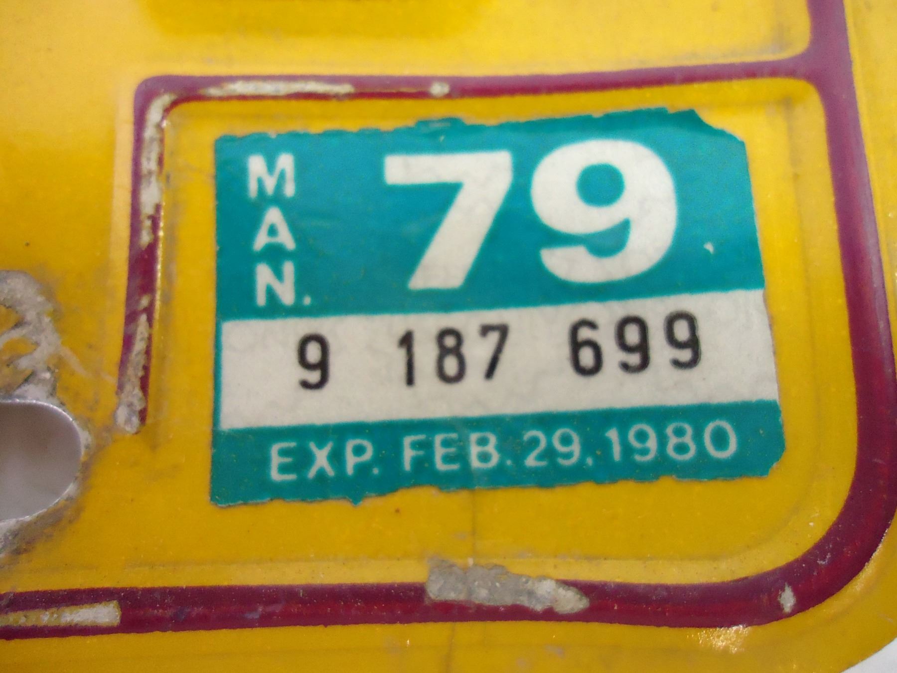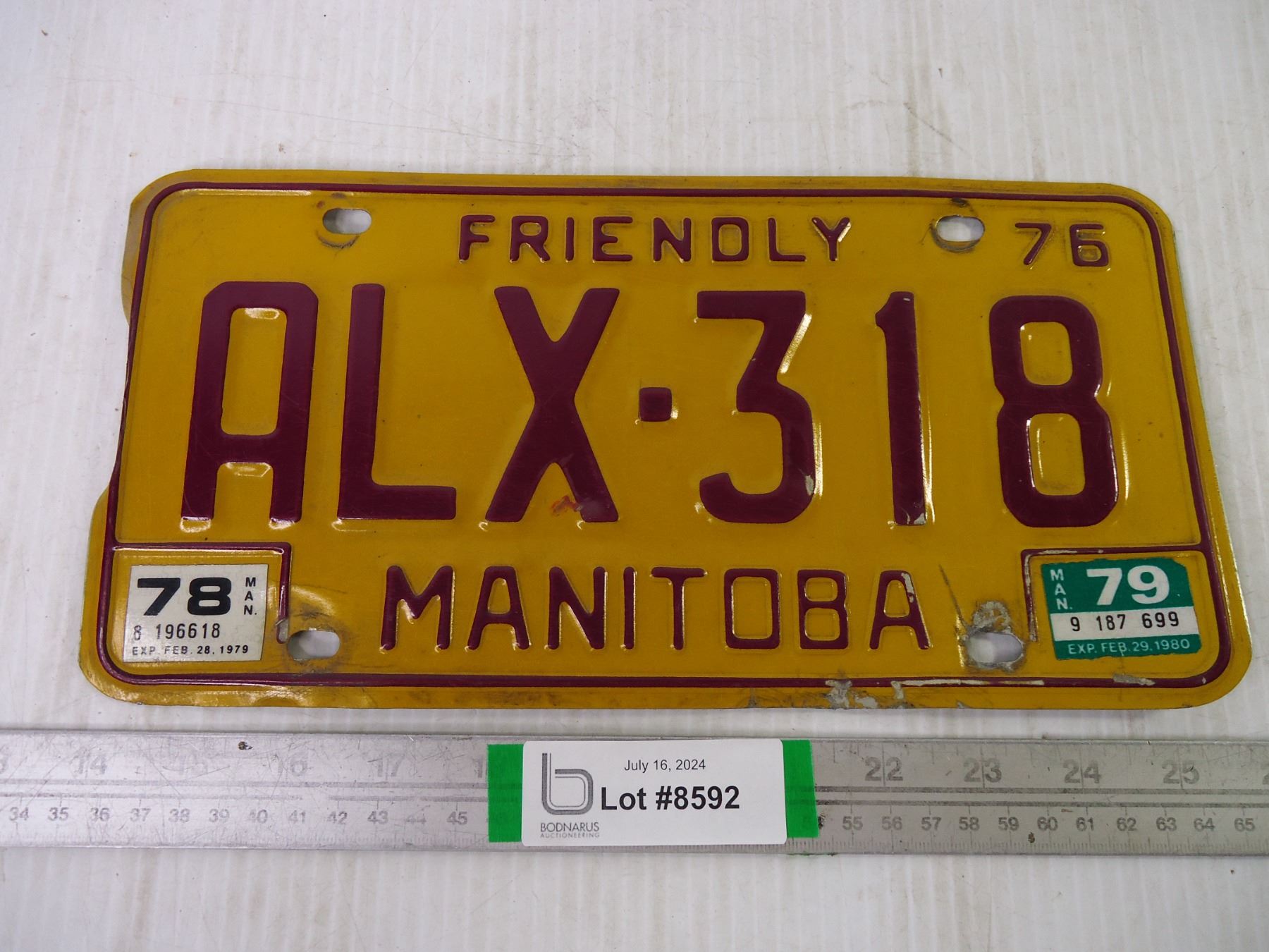 (1) 1976 Manitoba License Plate-last tagged 1978