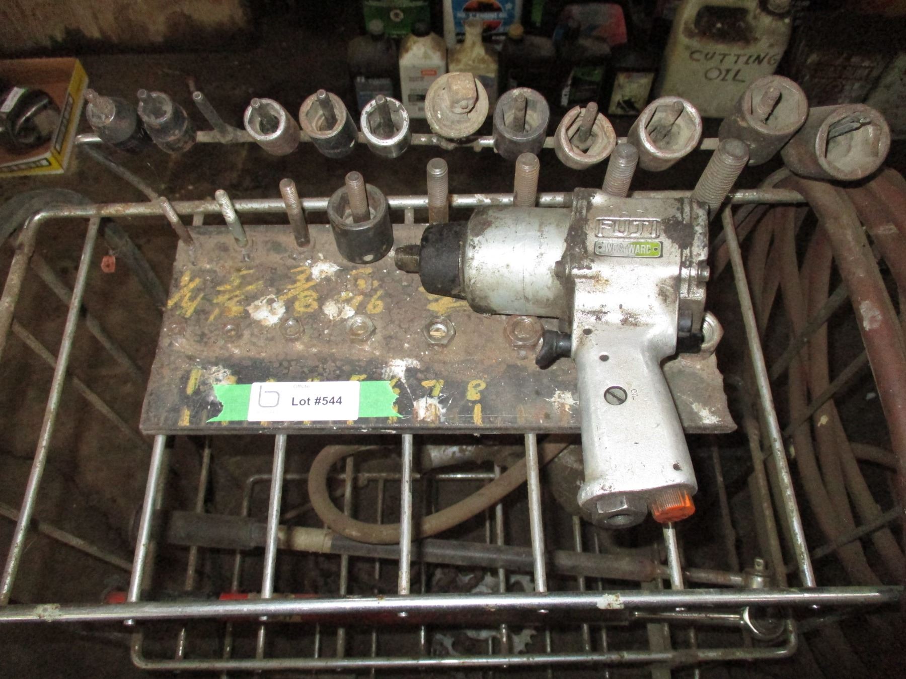 1/2 drive sockets with 1/2 air tool hose, cart, breaker bars, chain