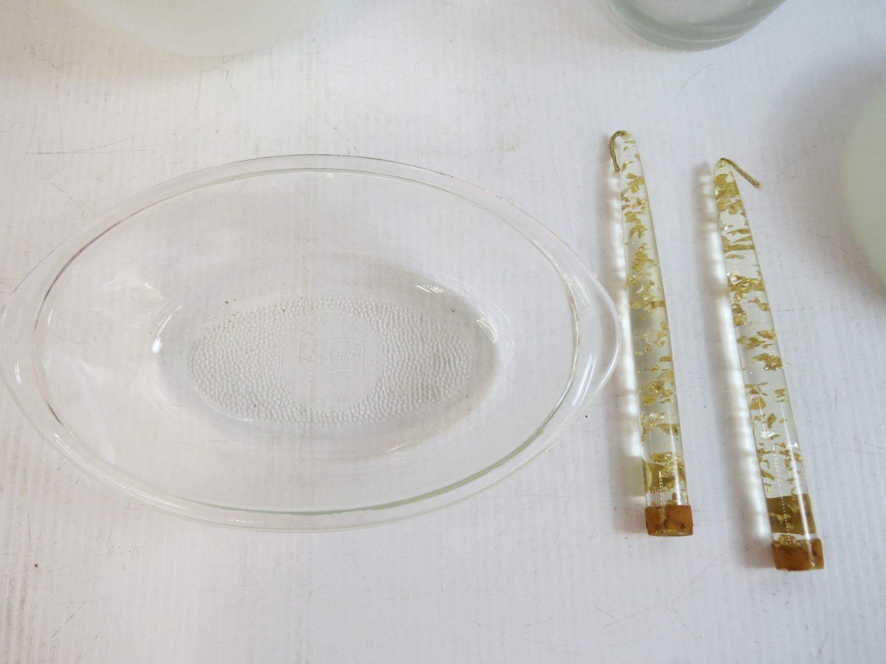 (1) Fire King Mixing Bowl - Chip-Dip Dishes - (1) Glasbake Dish - Bowl - Candles