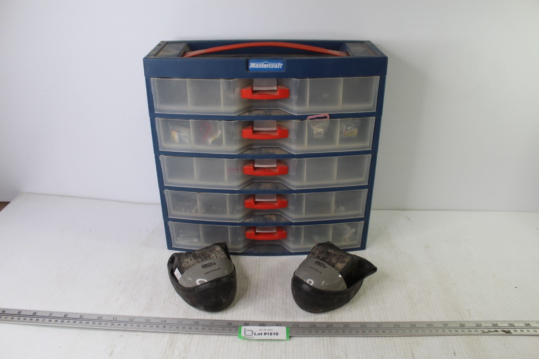 (1) Pair of Uline Steel Toes Slip-on Rubbers (Size Xs) - Mastercraft Parts Organizer w/Contents