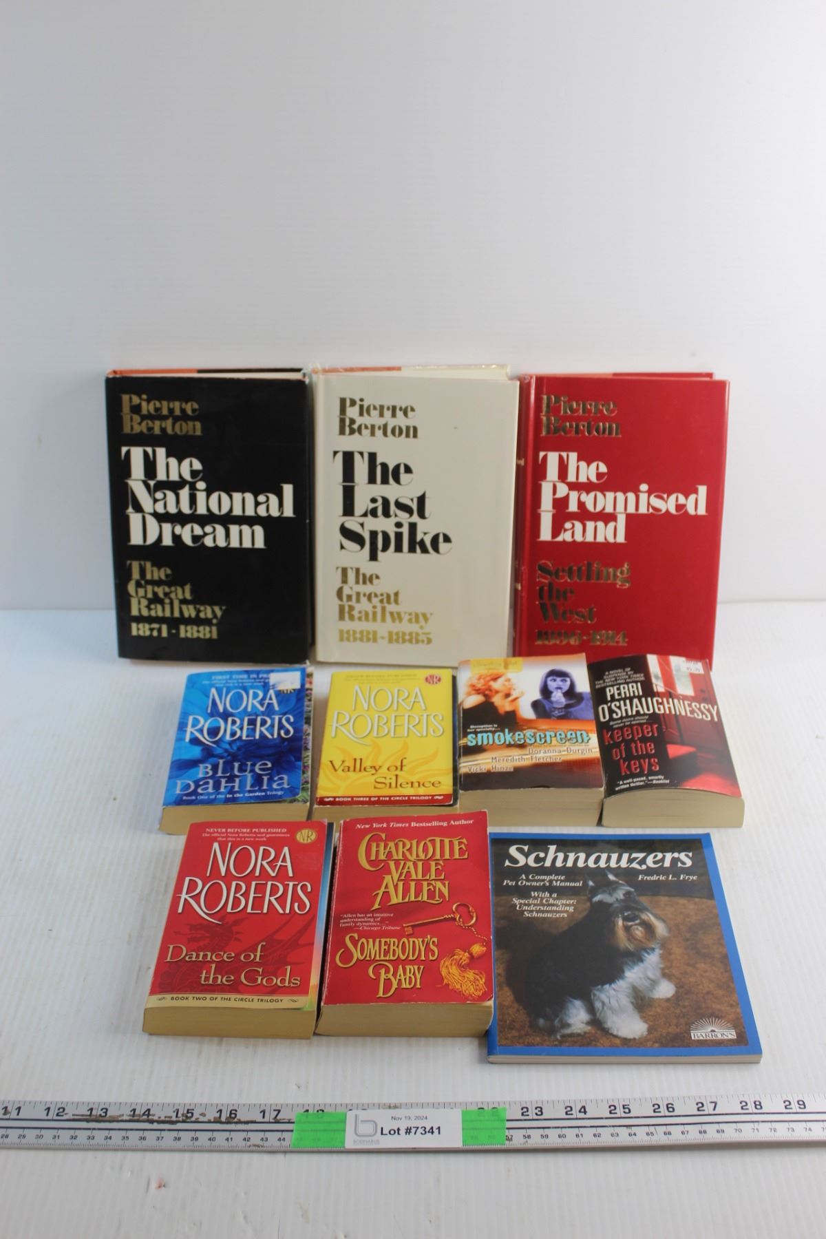 (10) Books - Pierre Berton, Nora Roberts and Schnauzers