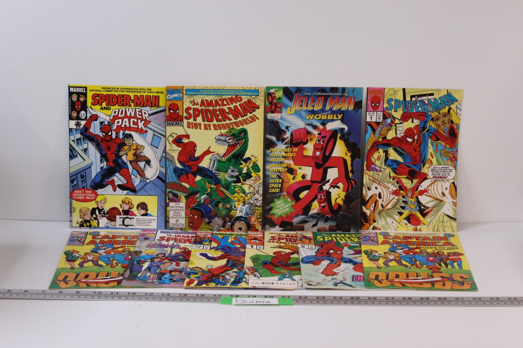 (10) Comics - Spiderman; Jell-O Man; Captain America; X-Men