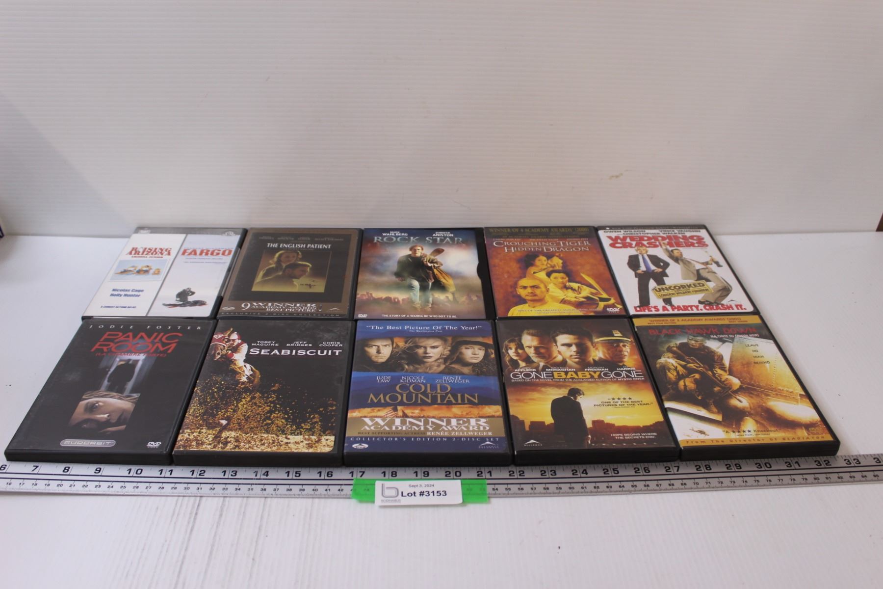 (10) DVDs: Seabiscuit, Wedding Crashers, Rock Star, Black Hawk Down, Misc.