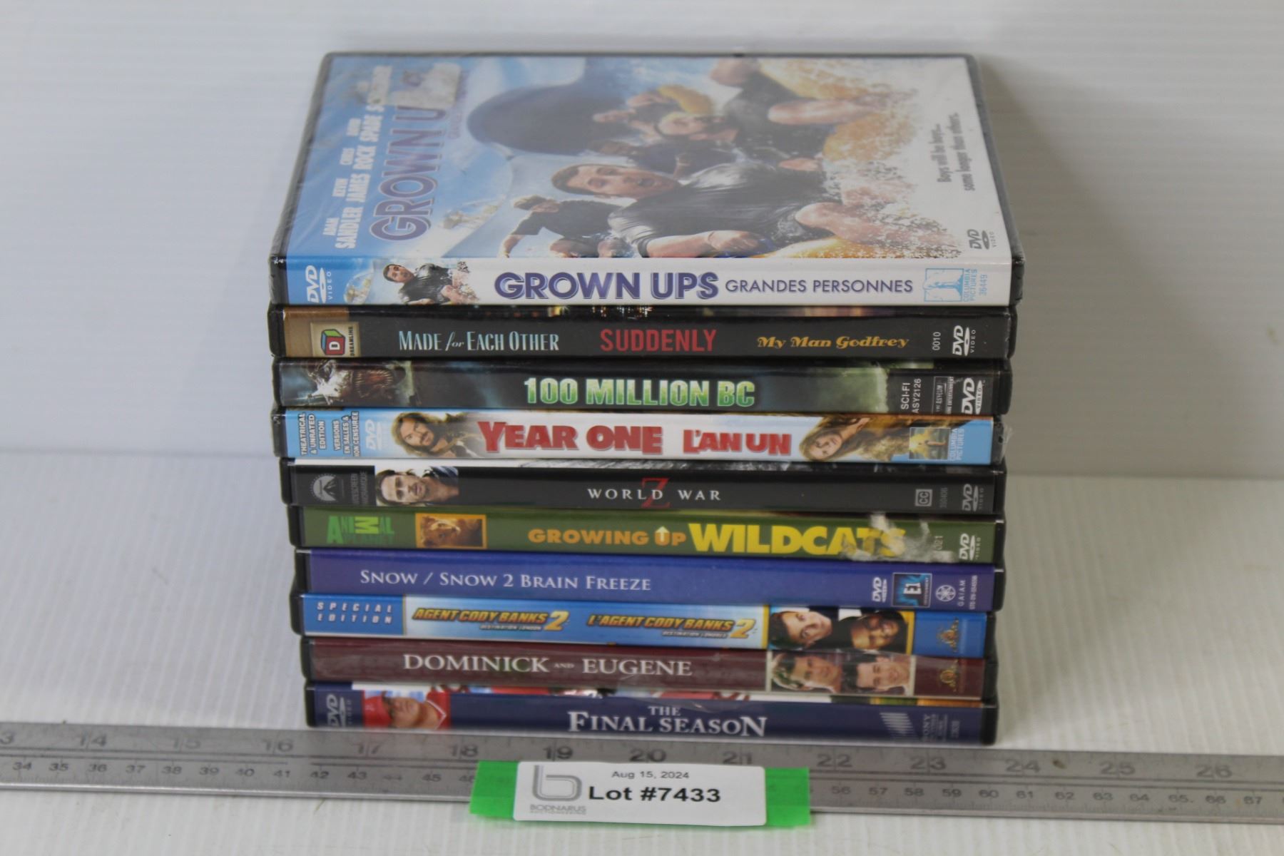 (10) DVDs - World War - Wild Cats - Year One - 100 Million BC - Grown Ups