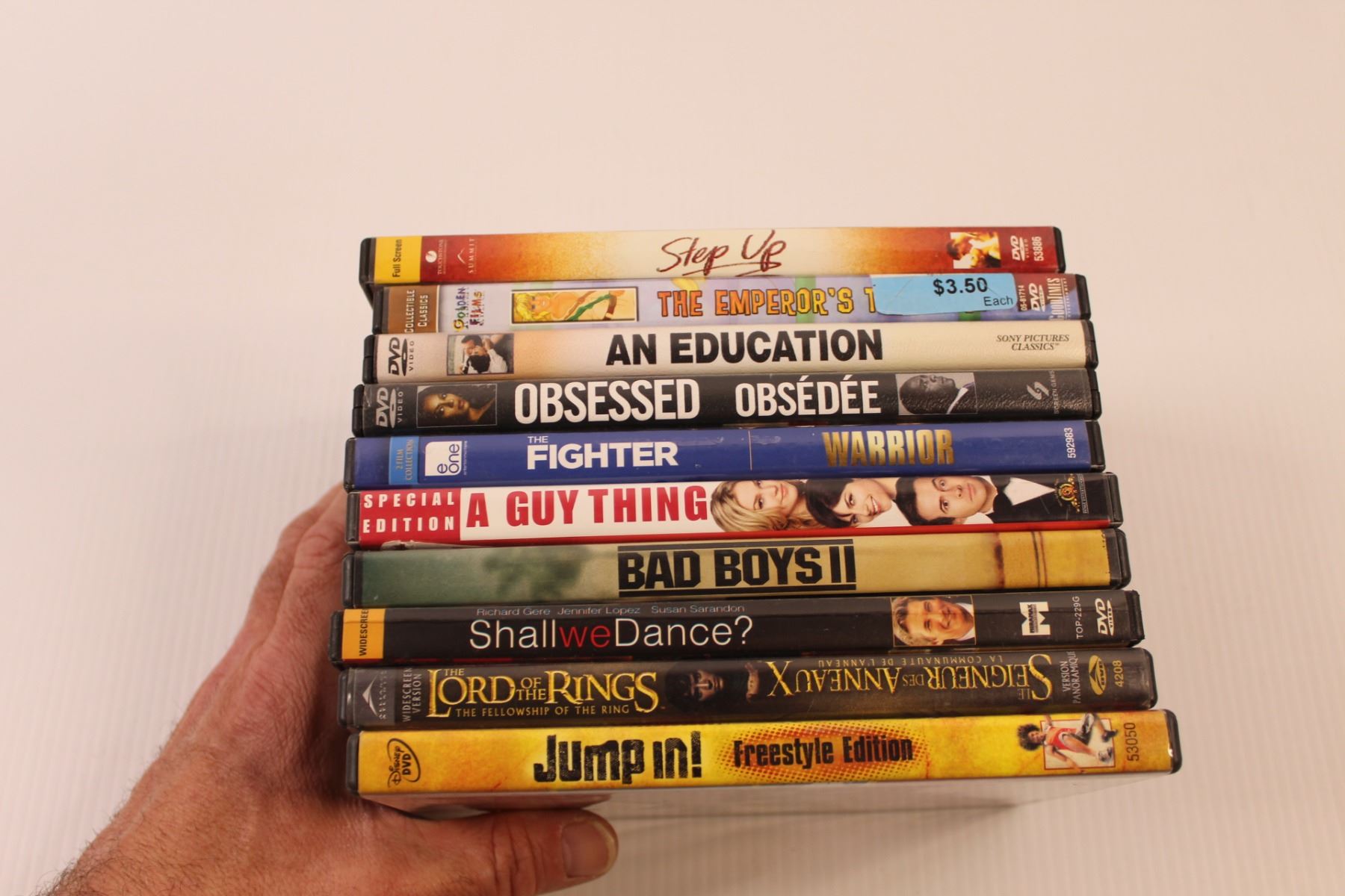 (10) DVDs of Varying Subject Matter - "an Education", "obsessed", "Bad Boys II", "A Guy Thing", "The Lord Of The Rings", "Step Up", "Jump In", etc.