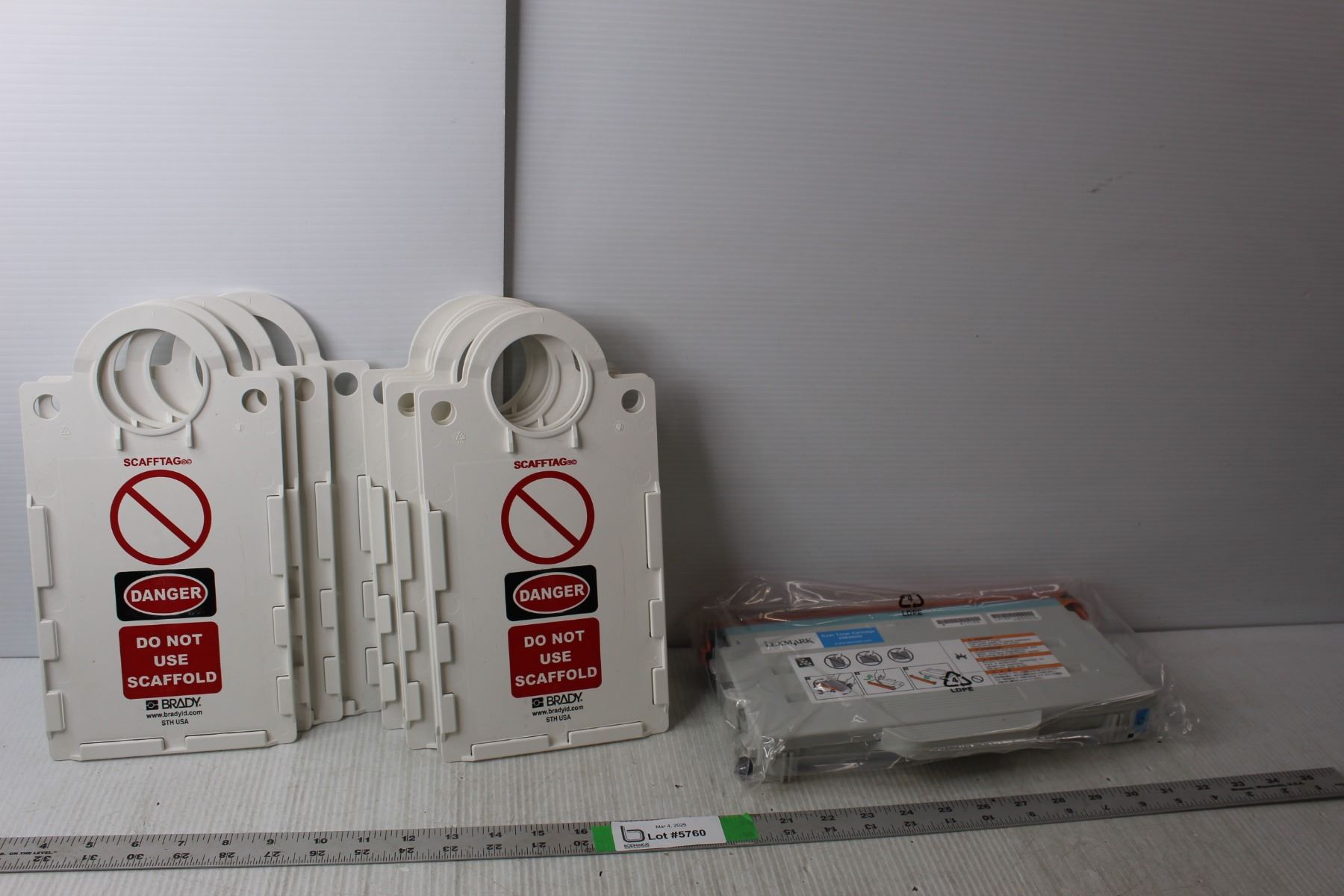 (10) Hanging Scaffold Signs & Lexmark Cyan Toner Cartridge- Sealed