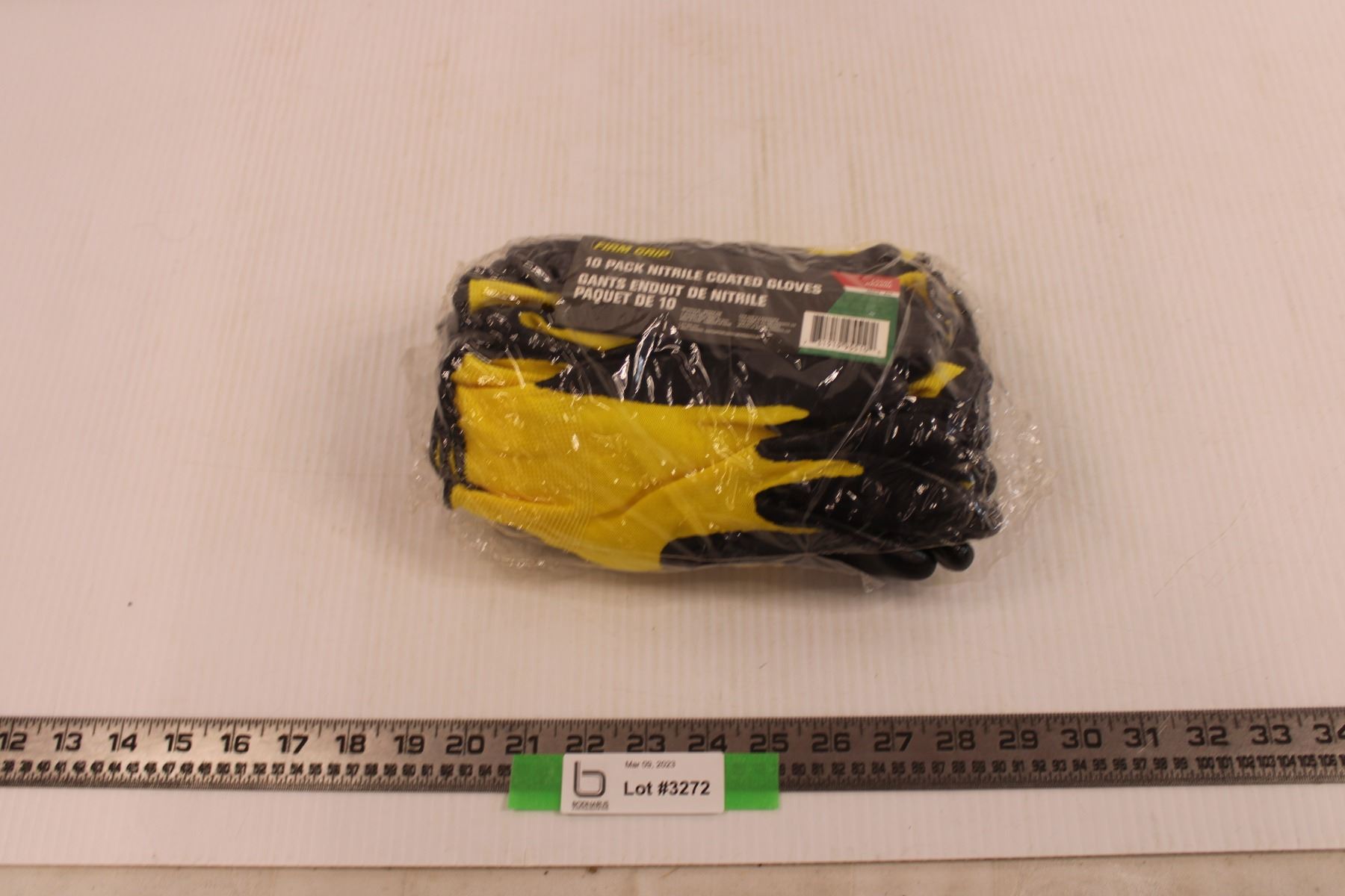 10 Pack Nitrile Coated Gloves (Large) (New)
