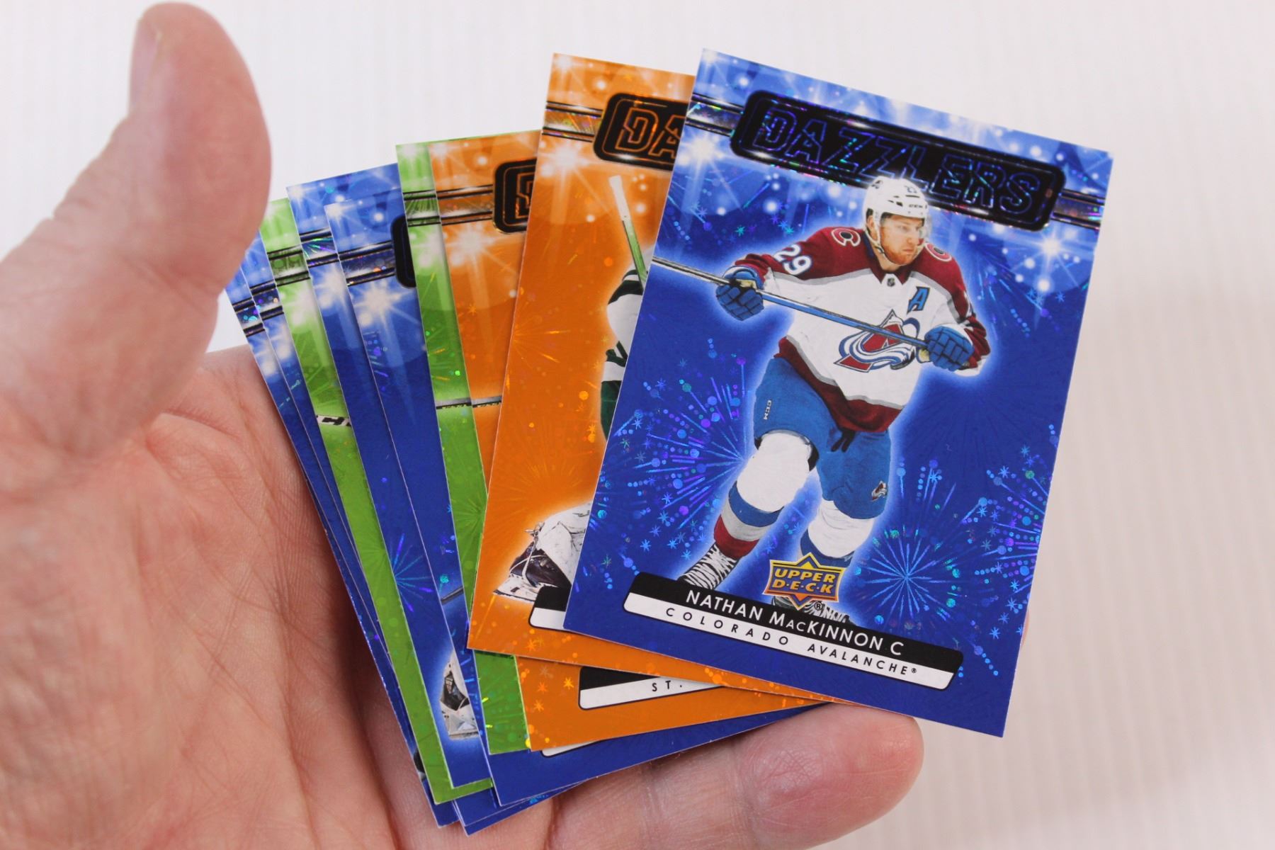(10) Upper Deck 2023-24 Dazzlers Hockey Cards: Nathan MacKinnon ; Orange Blue Green Dazzlers
