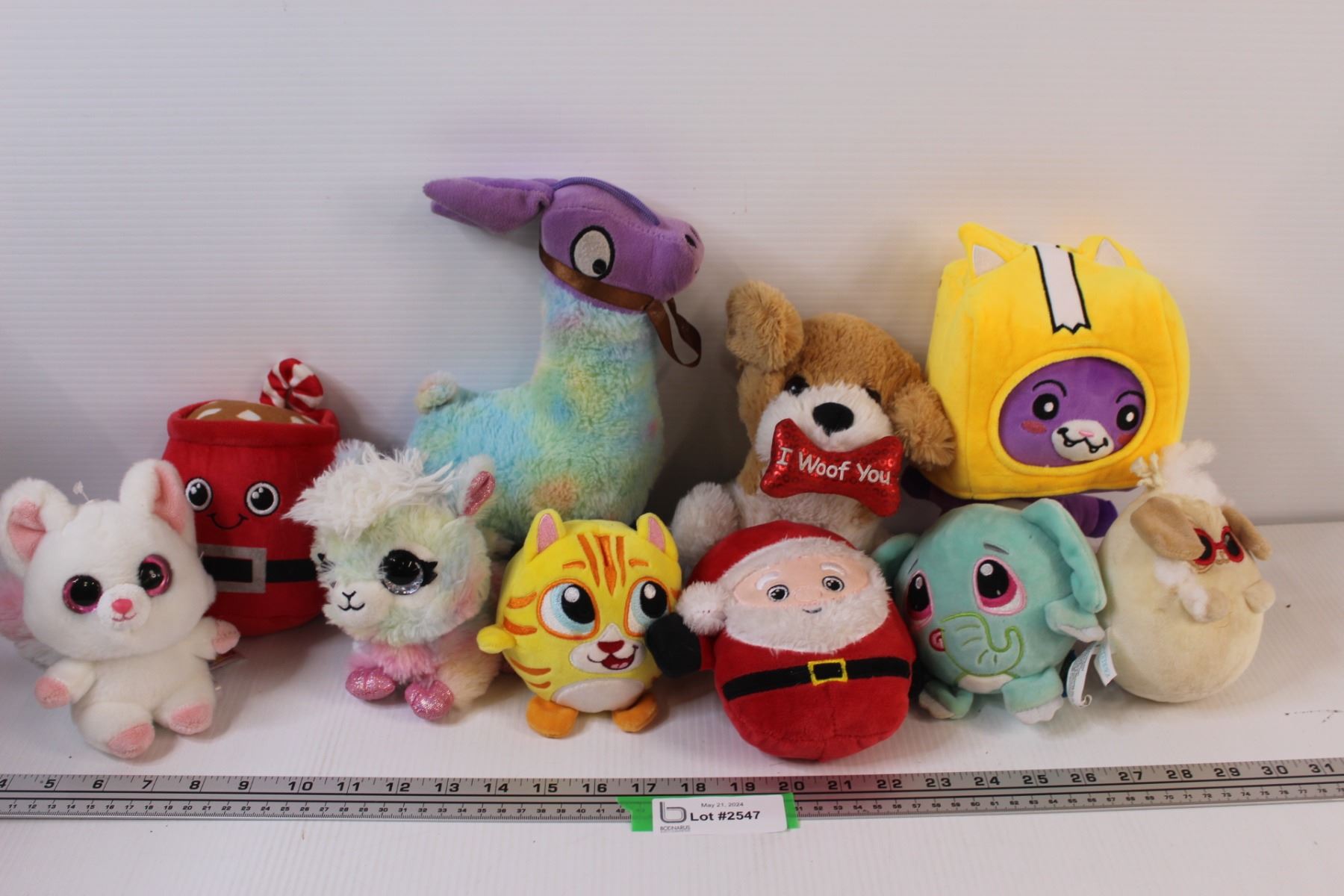 (10) Various Stuffies/Plushies - Lama, Santa, Elephant, Misc.