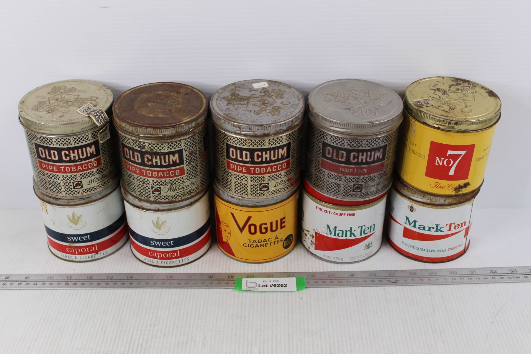 (10) Vintage Tabacco Tins, Old Chum, Vogue, Sweet Corporal