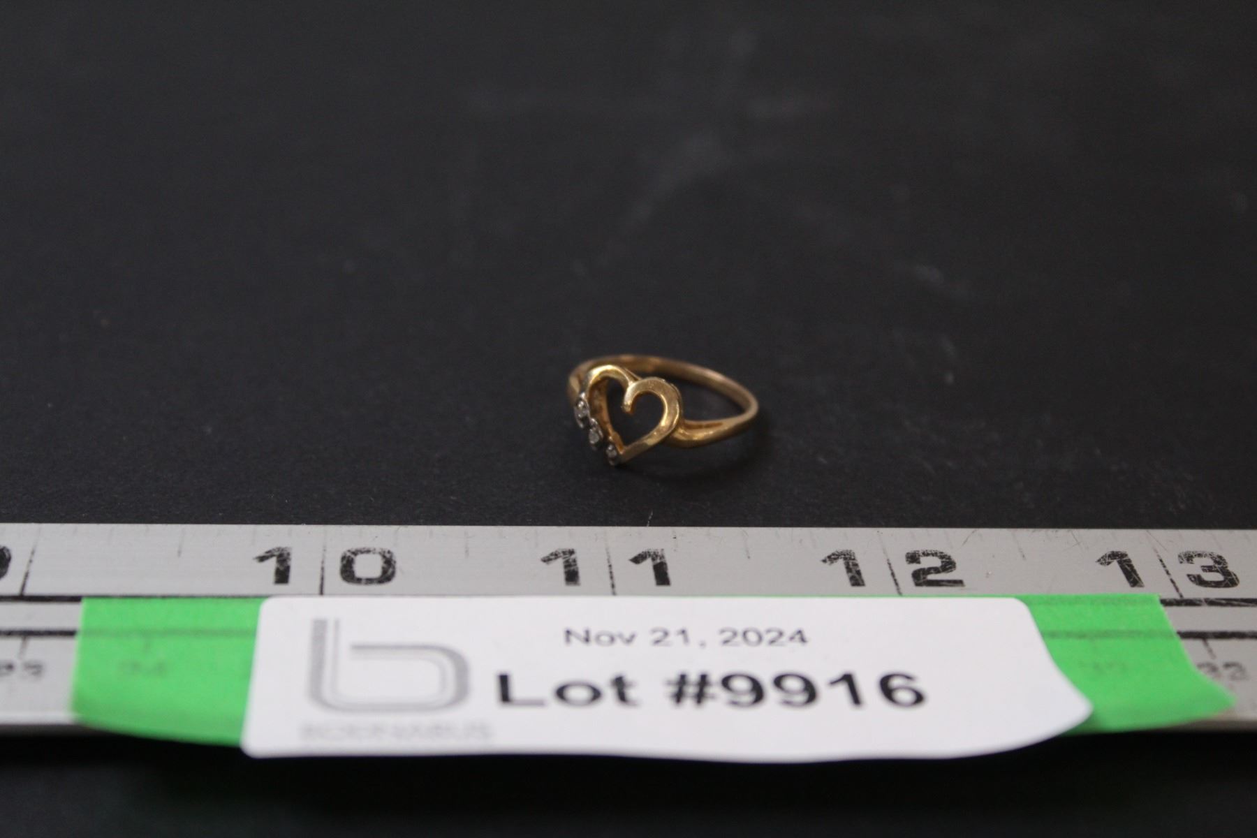 ^ 10K Gold Dynasty Heart Ring w/Three Diamonds - Size ?