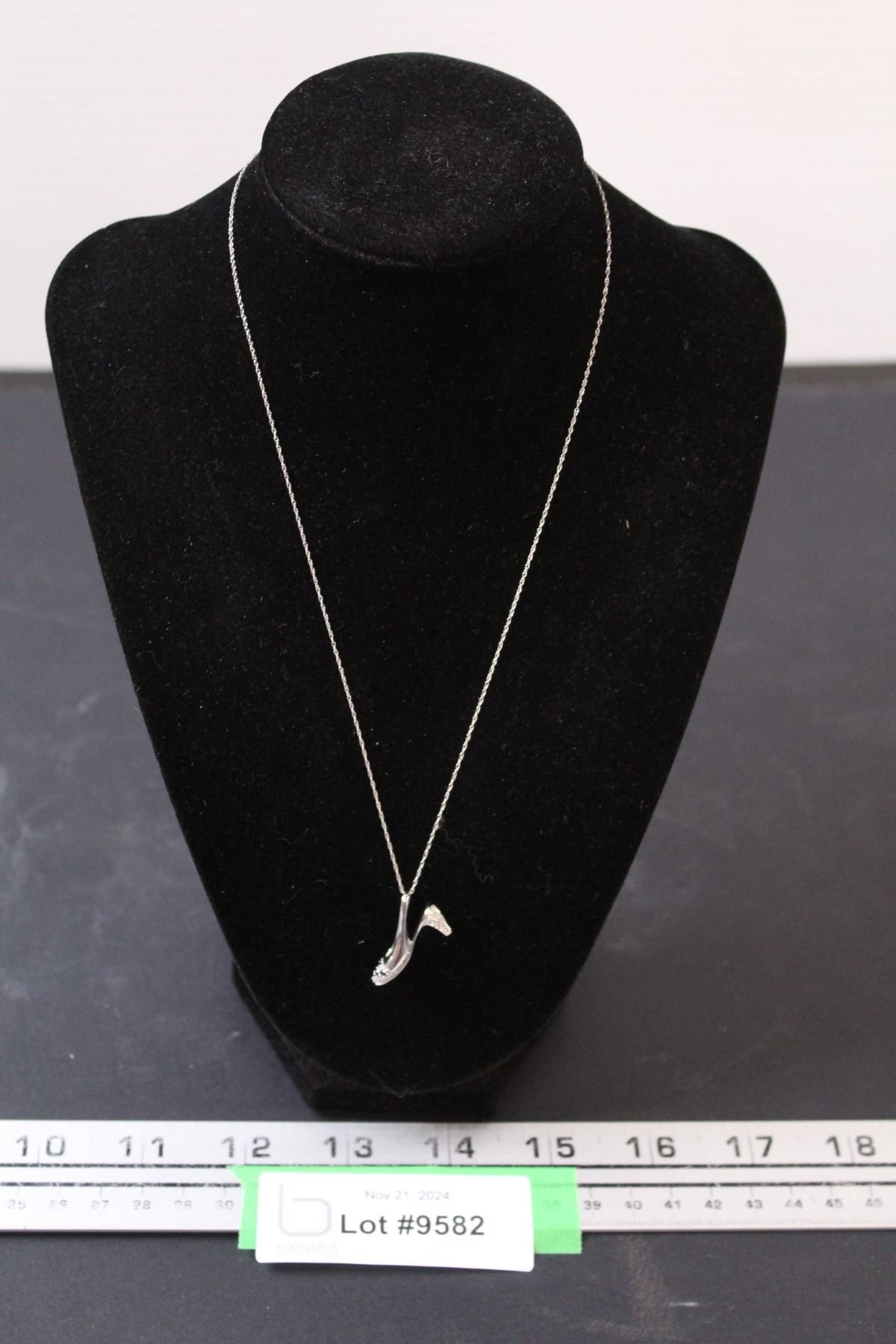 ^ 10K White Gold Slipper Pendant Necklace - Not Authenticated