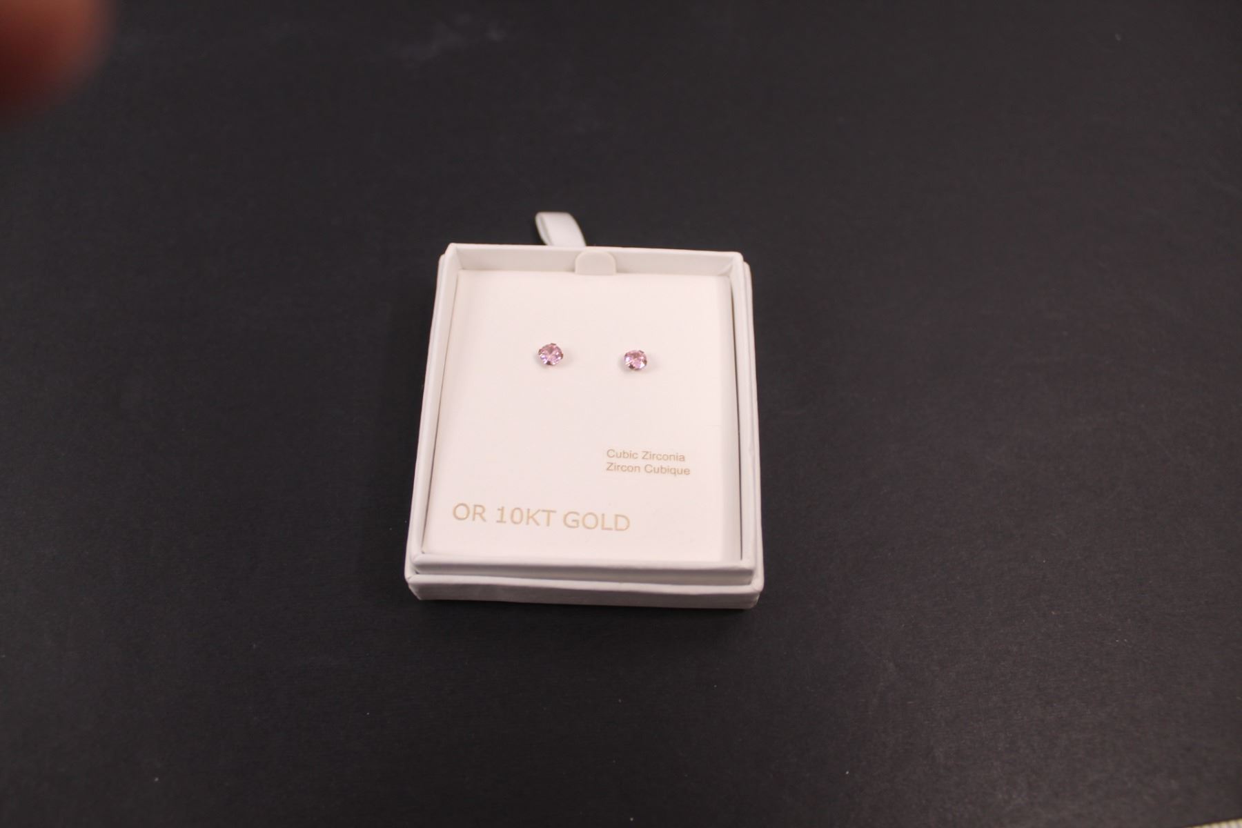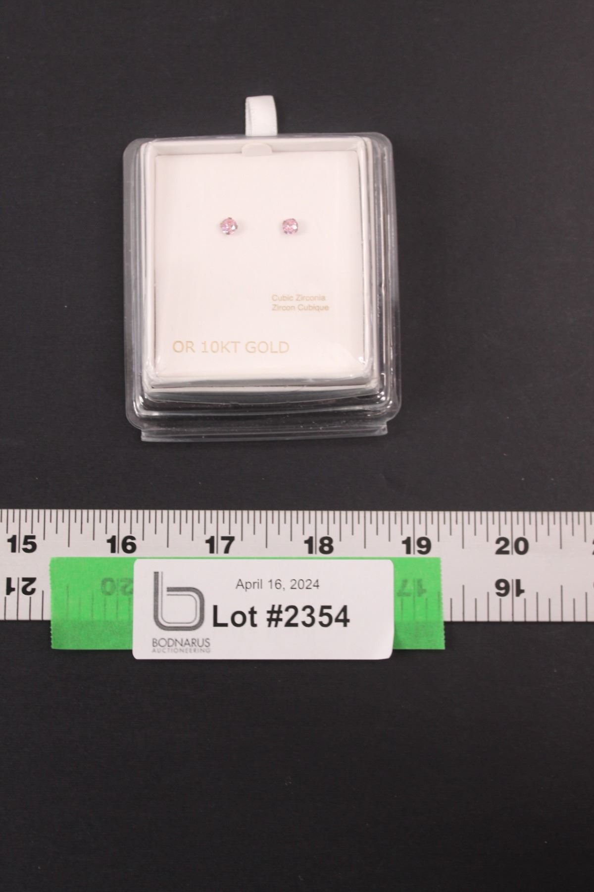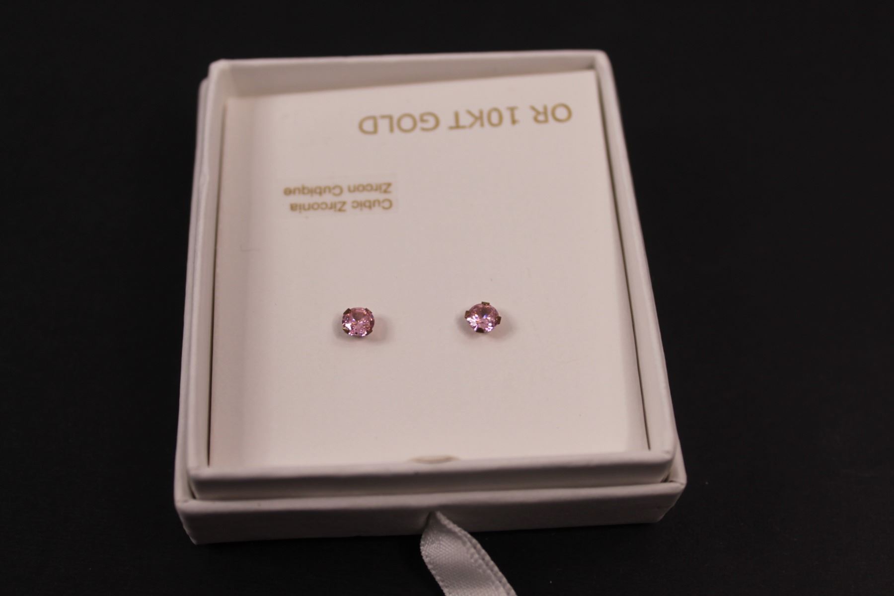 10kt Yellow Gold w/ Pink Zirconia Stud Earrings