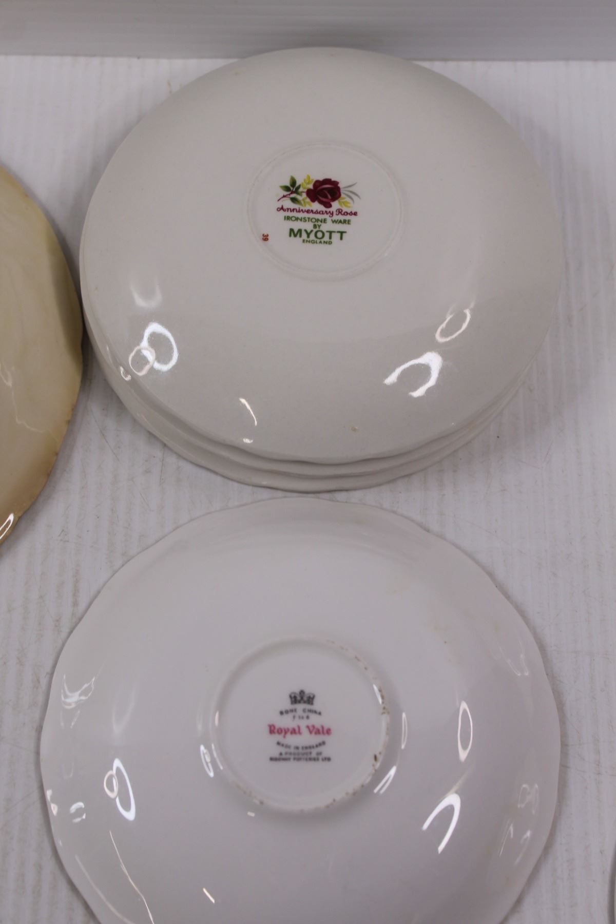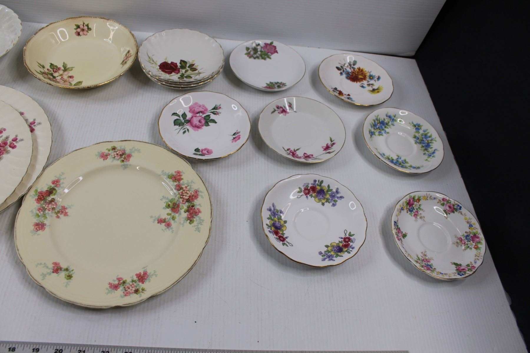 (11) China/Ironstone Saucers, (6) China Bowls & (3) Plates of Various Manufacturers (Foley, Paragon, Vale, Johnson Bros., Royal Swan, Queen Anne, J&G Meakin etc.)