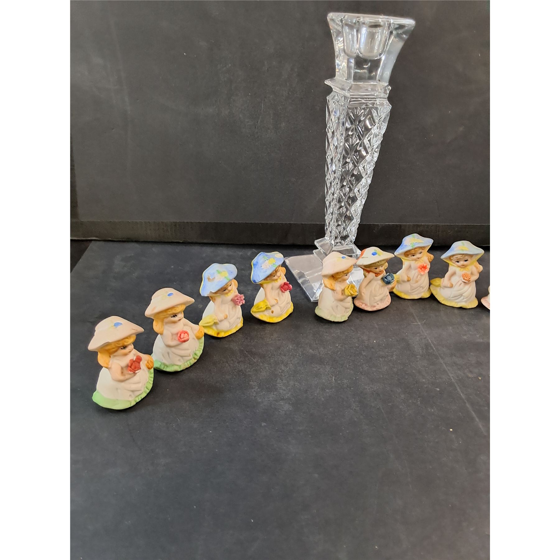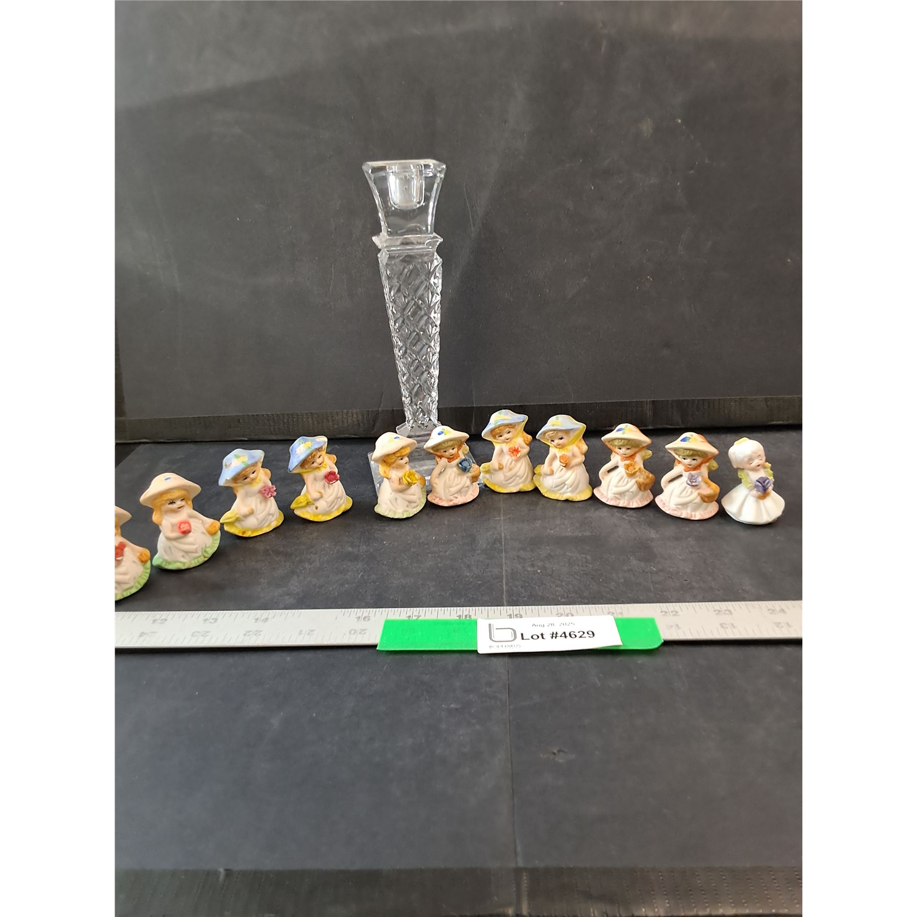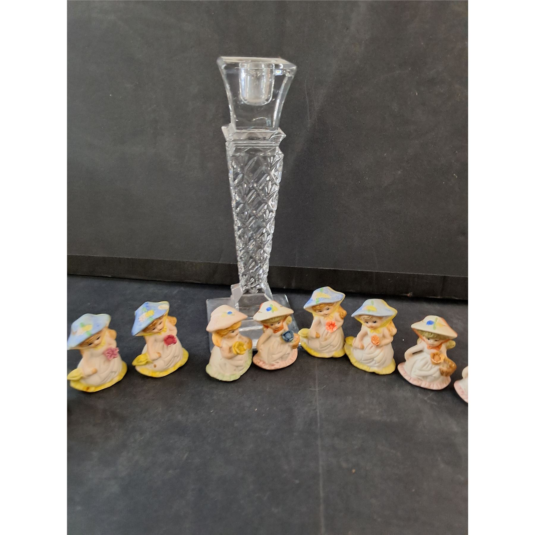 (11) Stone Craft Doll Figures & Glass Candle Holder