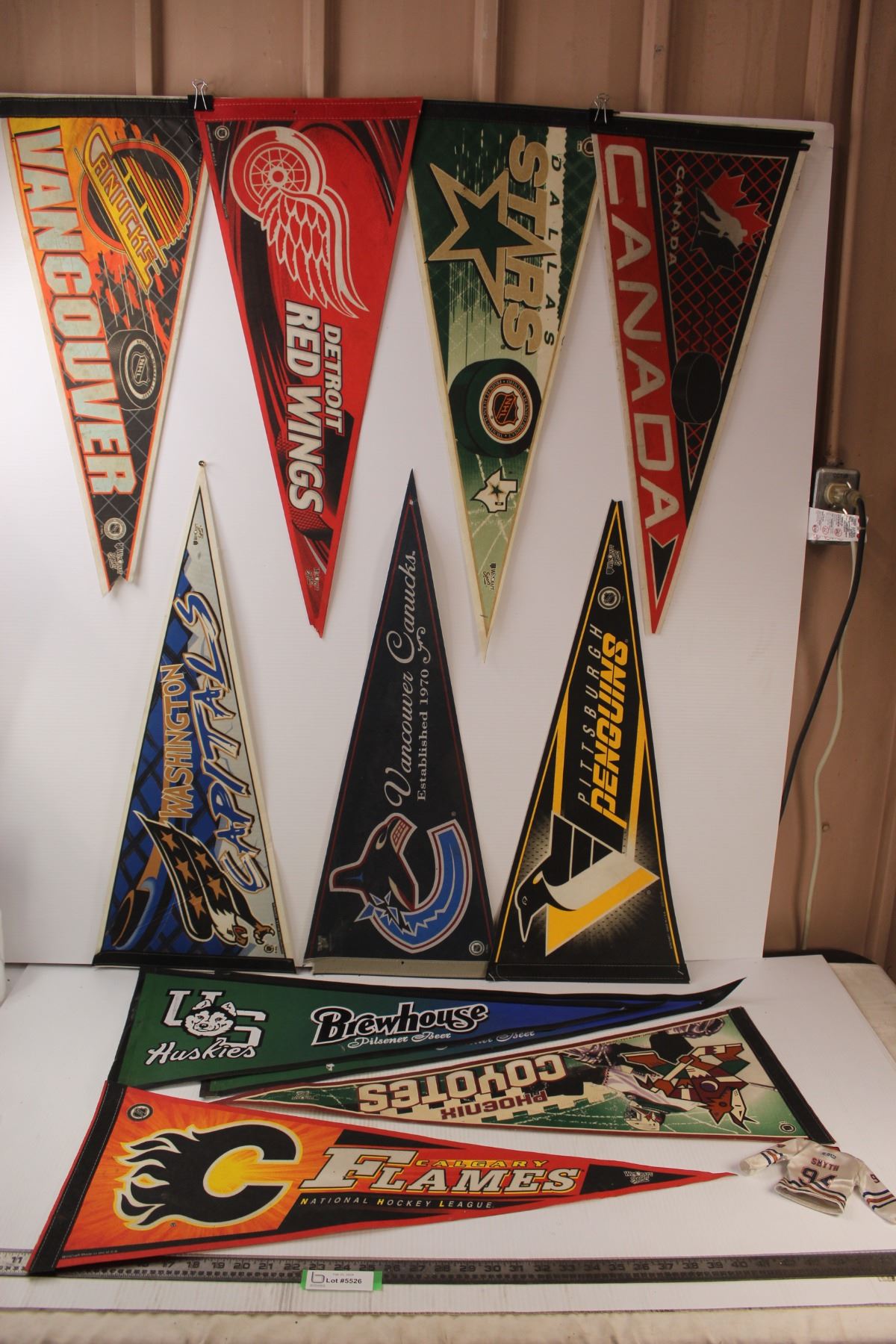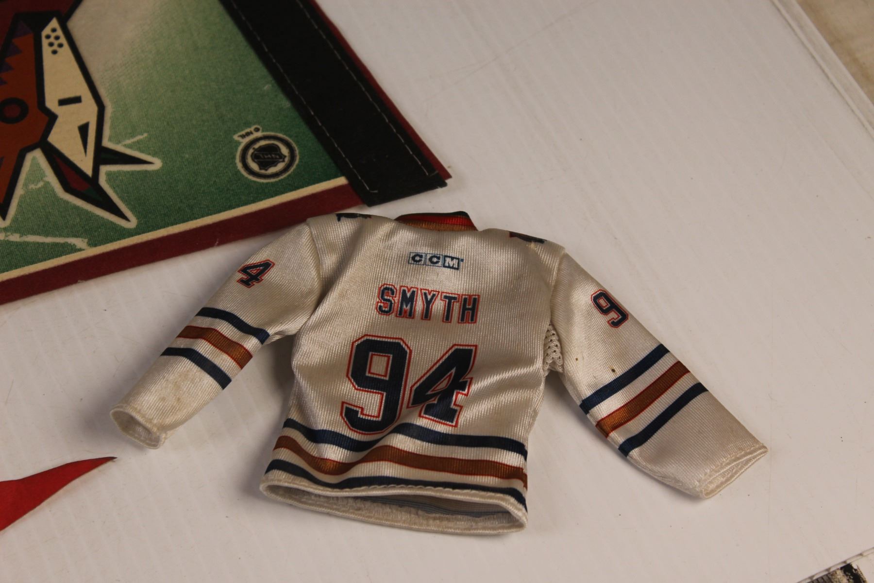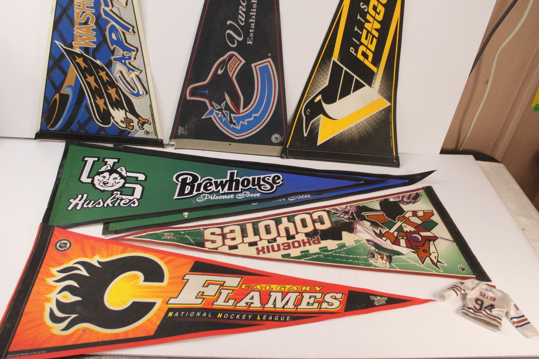 (11) Wincraft Sports Hockey Pennants & Small Smyth Oilers Jersey