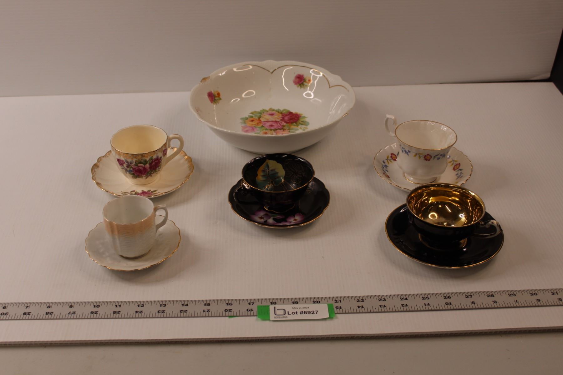 (11 pcs) China (5) Tea Cups/Saucers & (1) Serving Bowl - Princess China, Royal Albert, Winterling Bavaria, Japan, Unmarked
