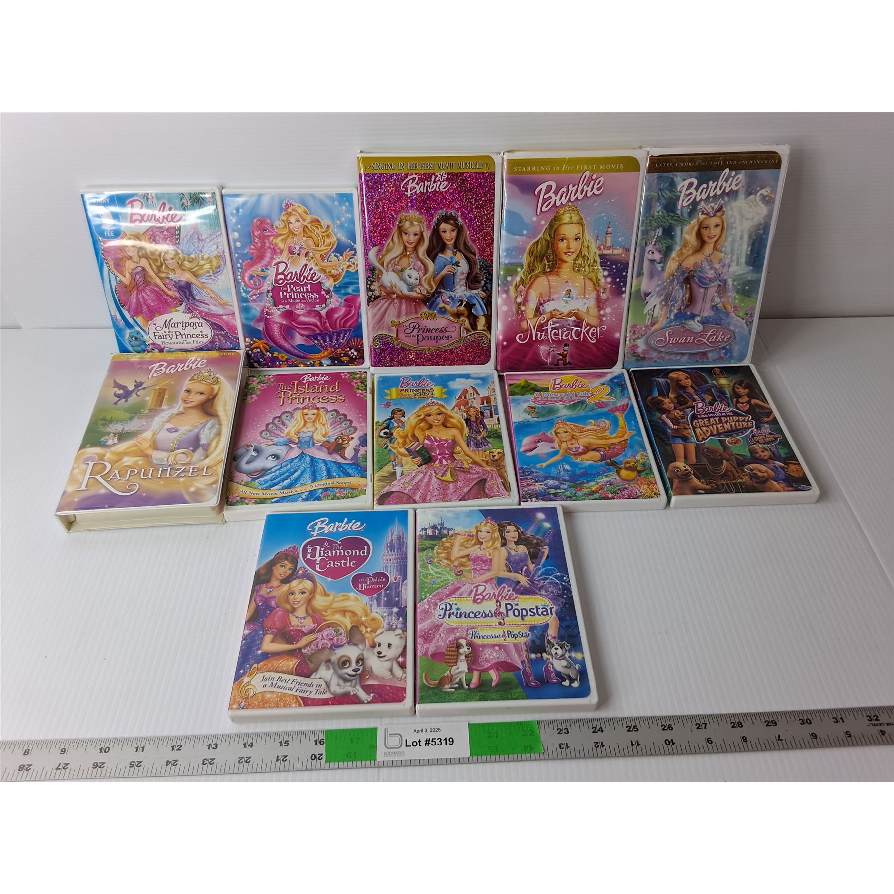 (12) Barbie VHS/DVD Movies- Swan Lake, Princess & the Popstar, Rapunzel, Misc.