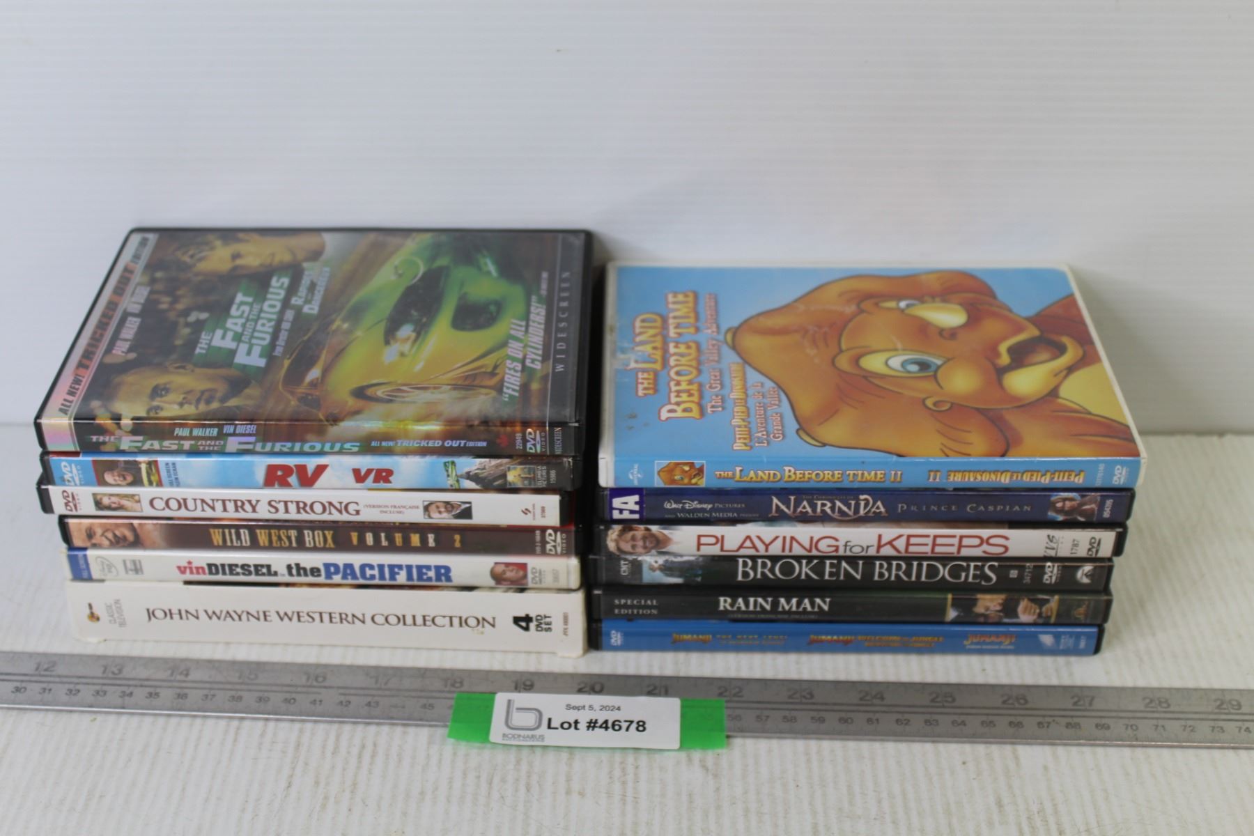 (12) DVDs - Narnia - RV - Broken Bridges - Playing For Keeps - Rain Man - Fast & Furious
