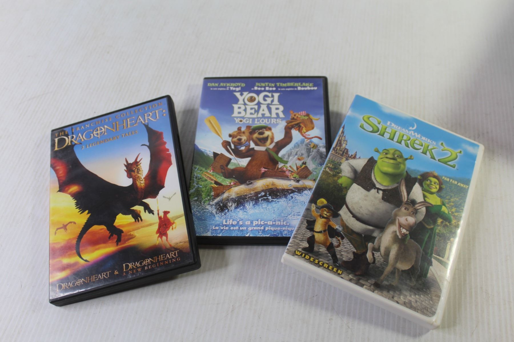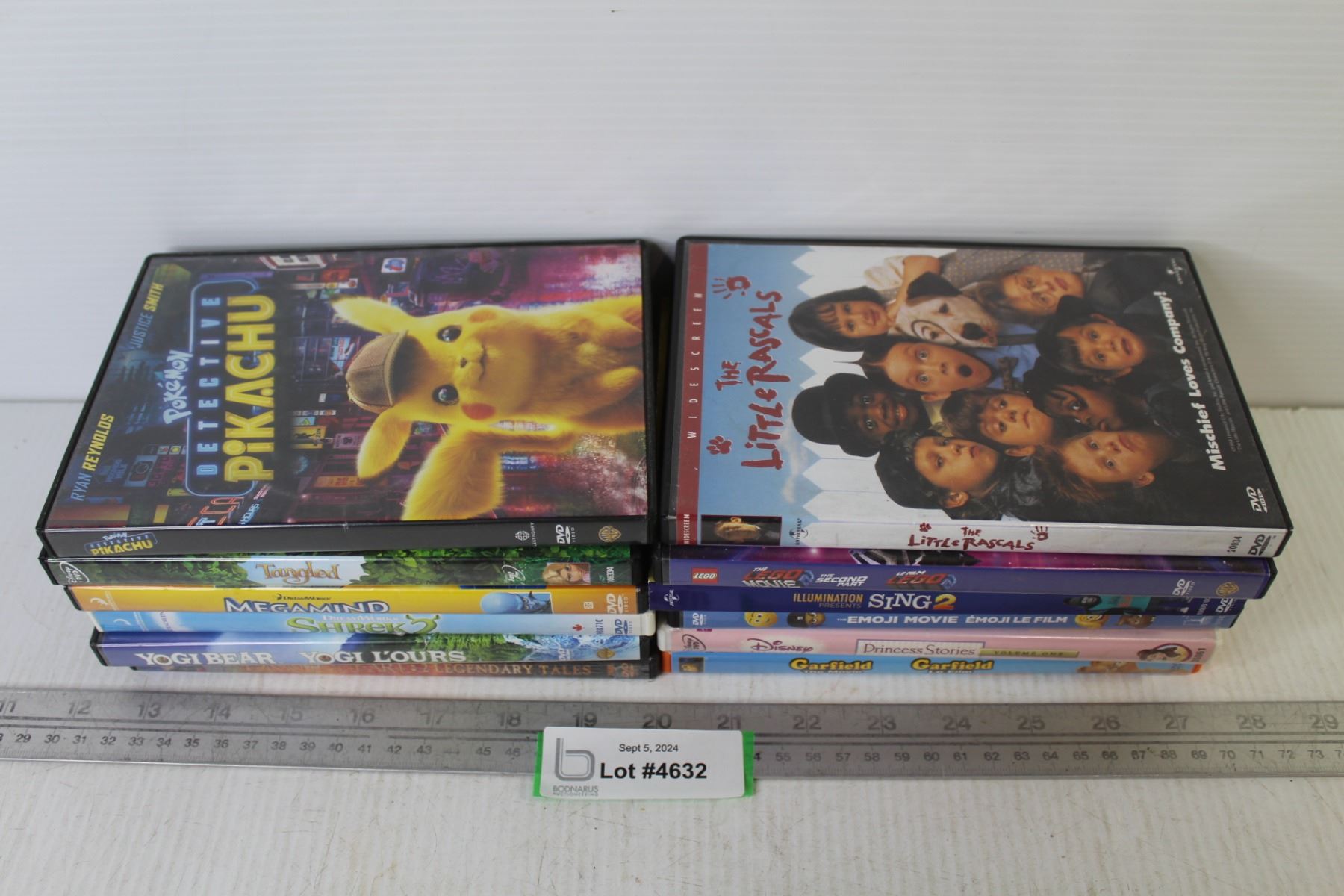 (12) DVDs - Shrek 2 - The Emoji Movie - Dragonheart - Garfield - Yogi Bear - Pikachu - The Lego Movie