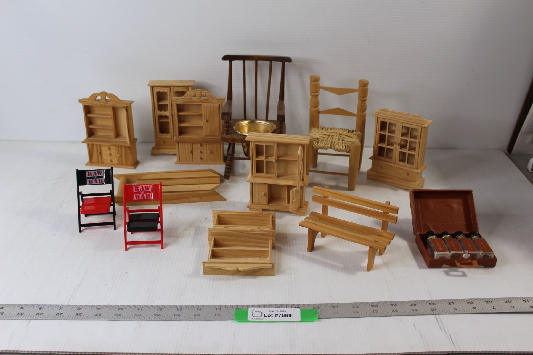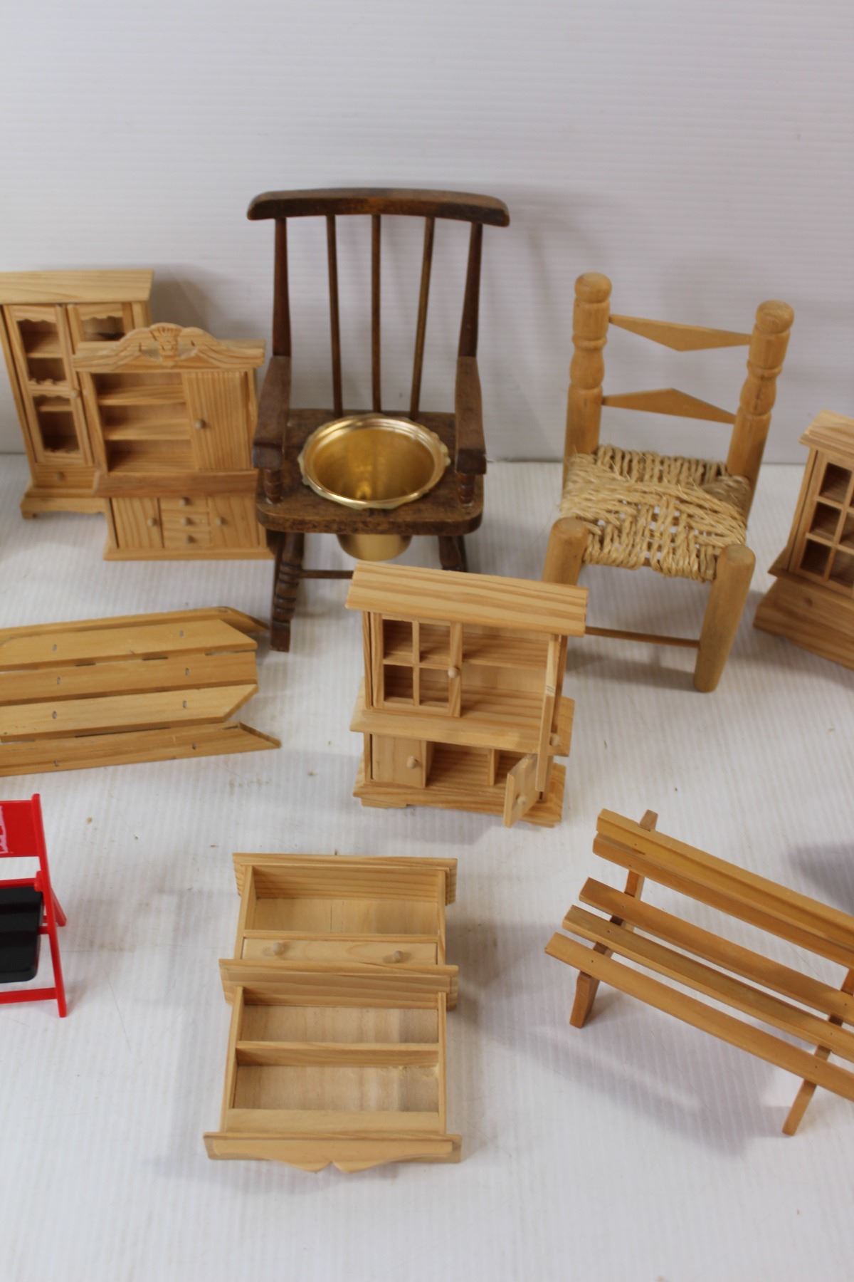 (12) Doll Furniture - Closets, Shelves, Chairs, Benches