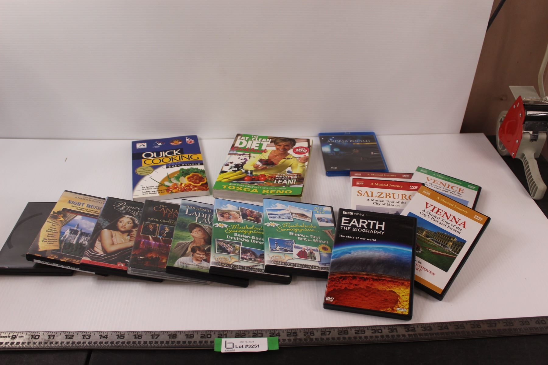 (12) European Travel, Canadian Tenors DVD's (1) Blu-ray "Andrea Bocelli" & (2) Cookbooks