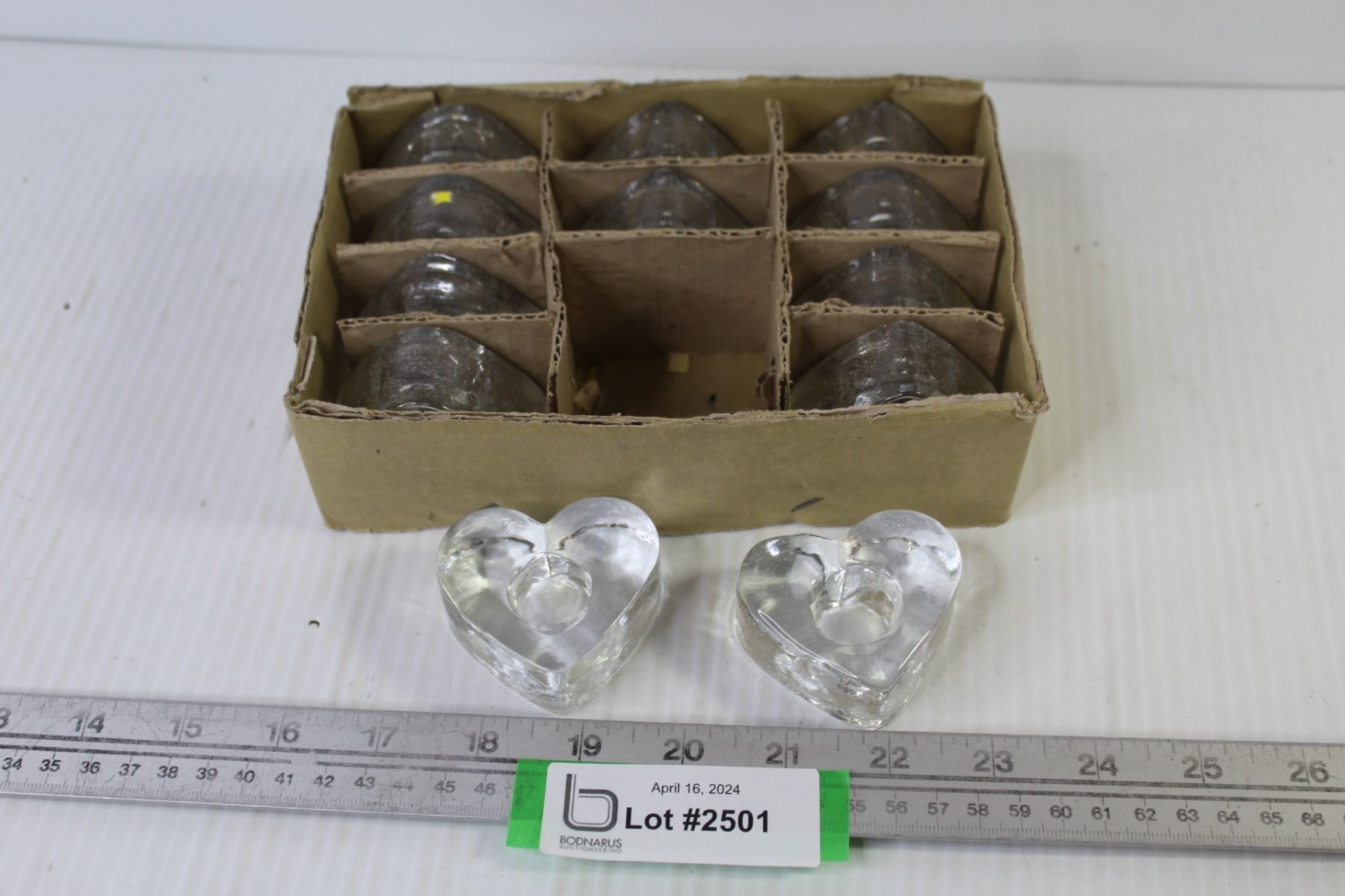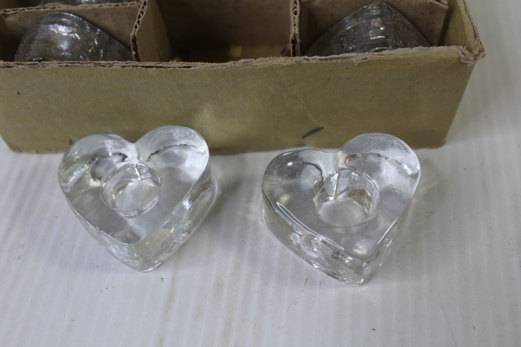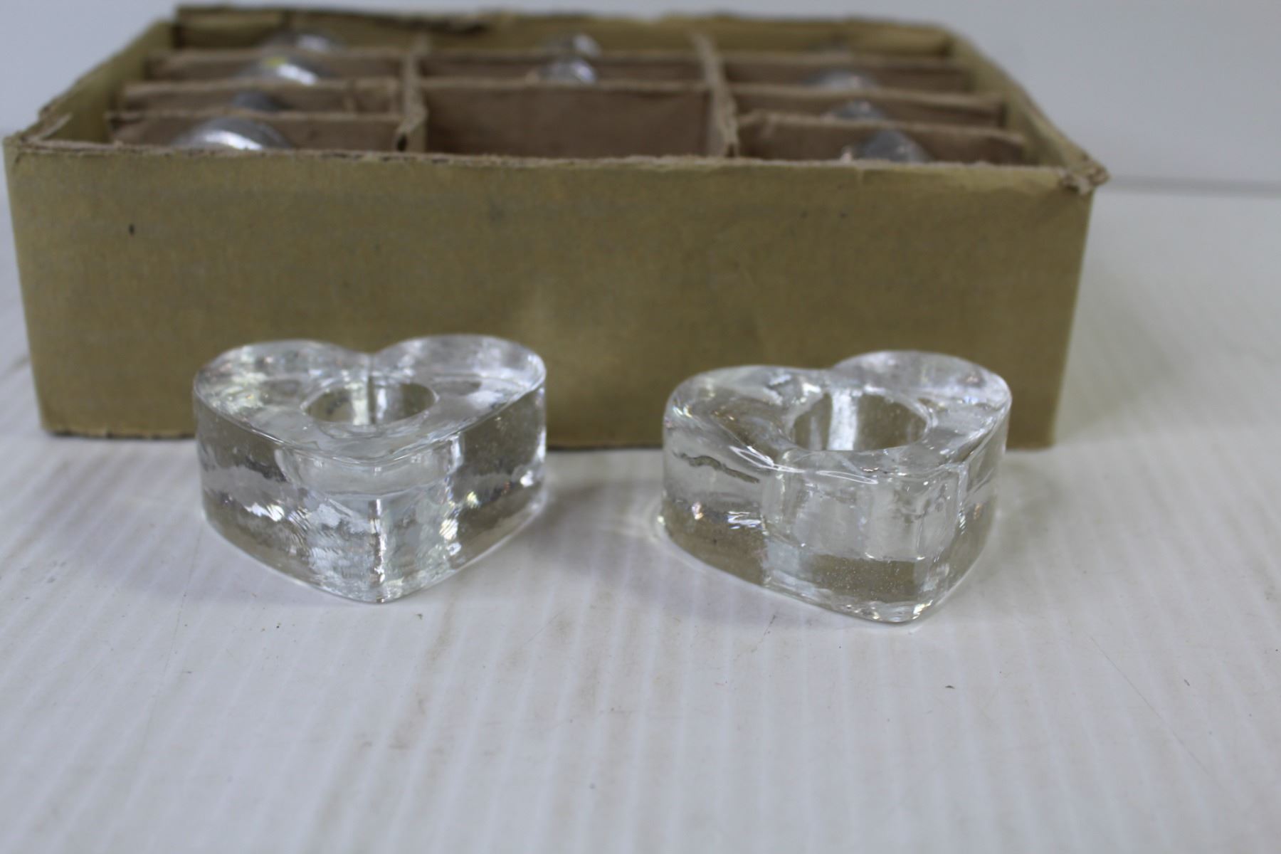 (12) Glass Heart Shaped Candle Holders (NIB)