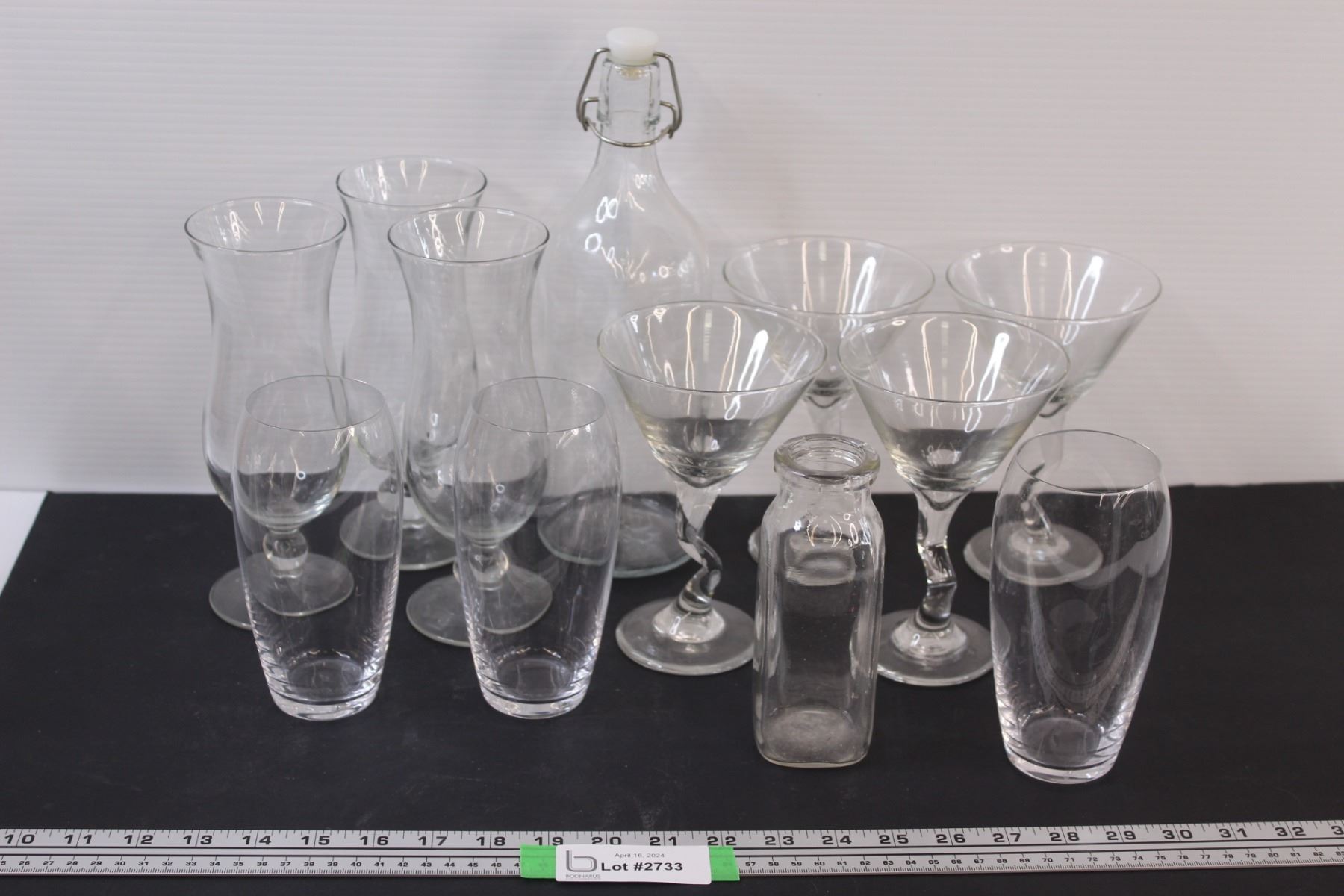 (12) Lot of Glassware: Cocktails Glasses; Wine Glasses; Tumblers; Water Bottle