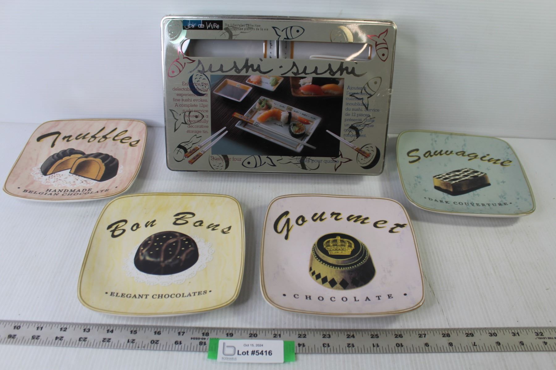 12 Piece Sushi Service Set (NIB) - (4) Ceramic Chocolate Plates