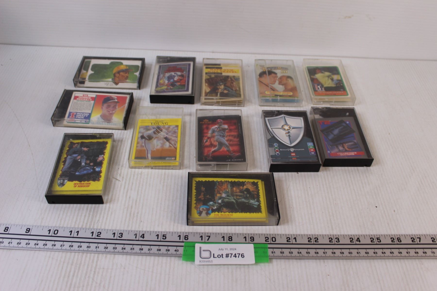 (12) Sports Cards in Cases (Wrestling, Baseball, Movie, Golf)
