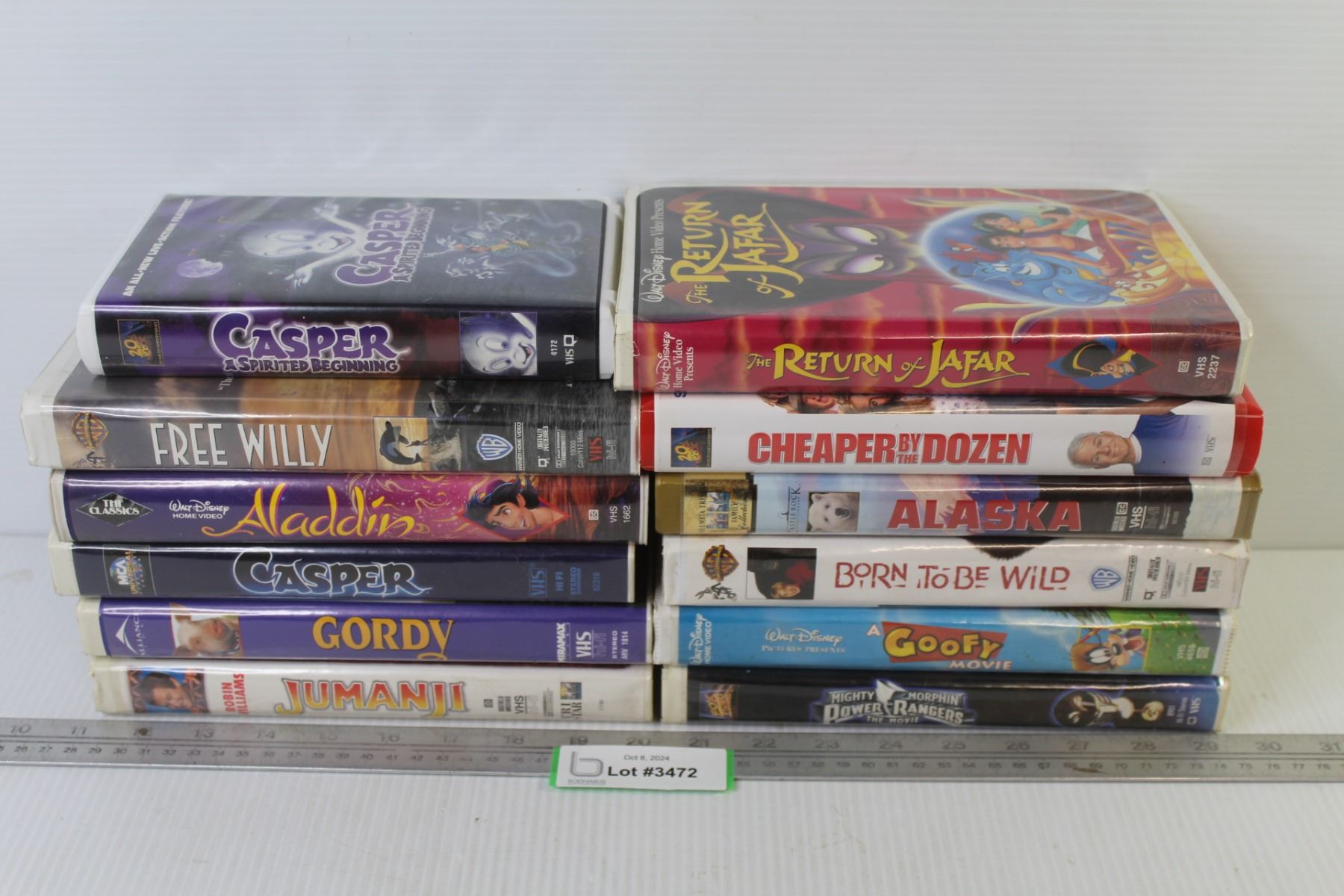(12) VHS Tapes - Casper - Aladdin - Free Willy - Jumanji - Gordy - Alaska - Cheaper by The Dozen