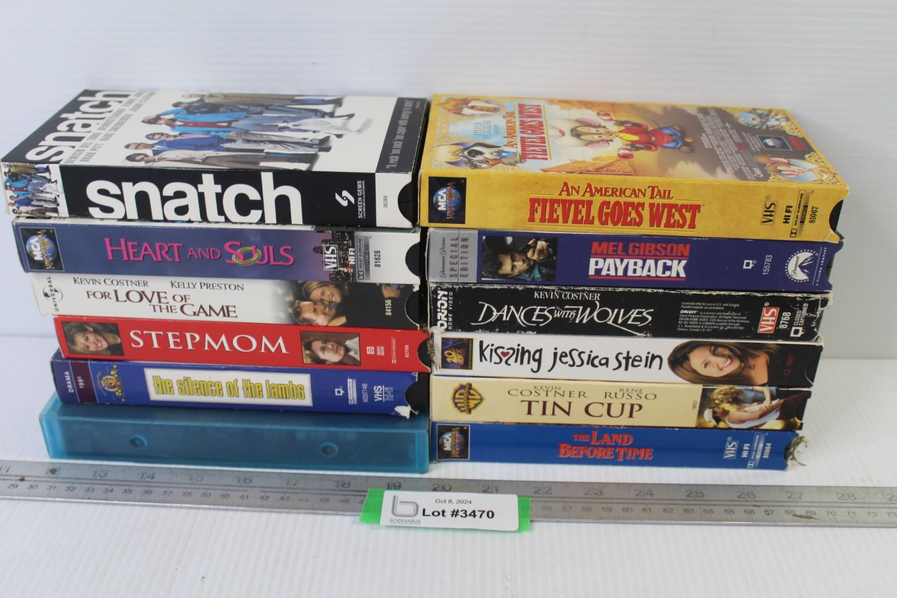 (12) VHS Tapes - Fievel Goes West - Stepmom - Payback - Tin Cup - Dances With Wolves - Heart & Souls