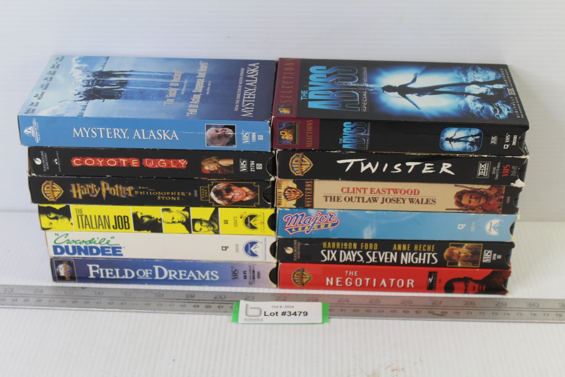 (12) VHS Tapes - Josey Wales - Twister - Crocodile Dundee - Field of Dreams - Harry Potter - Major League