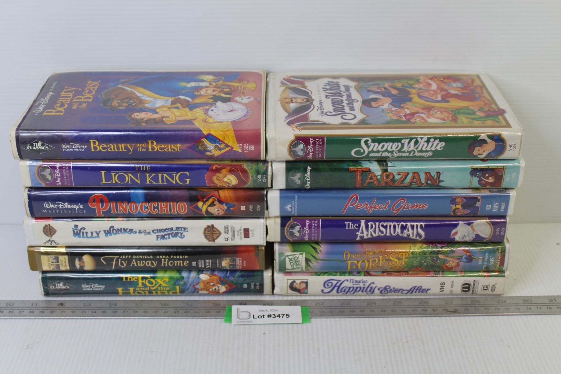 (12) VHS Tapes - Snow White - Tarzan - The Lion King - Pinocchio - Beauty & The Beast - Once Upon a Forest