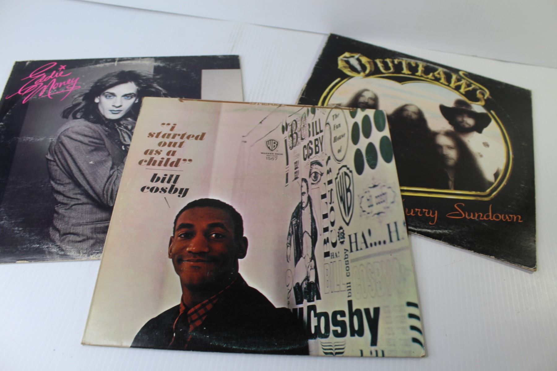 (12) Vinyl Records - Eddie Money - Bill Cosby - Outlaws - street Heart - Billy Joel - Wang Chung