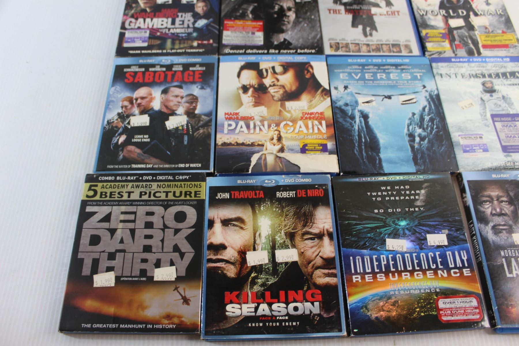 (13) Blue-Ray+DVD Movies - Pain & Gain. World War Z and Sabotage
