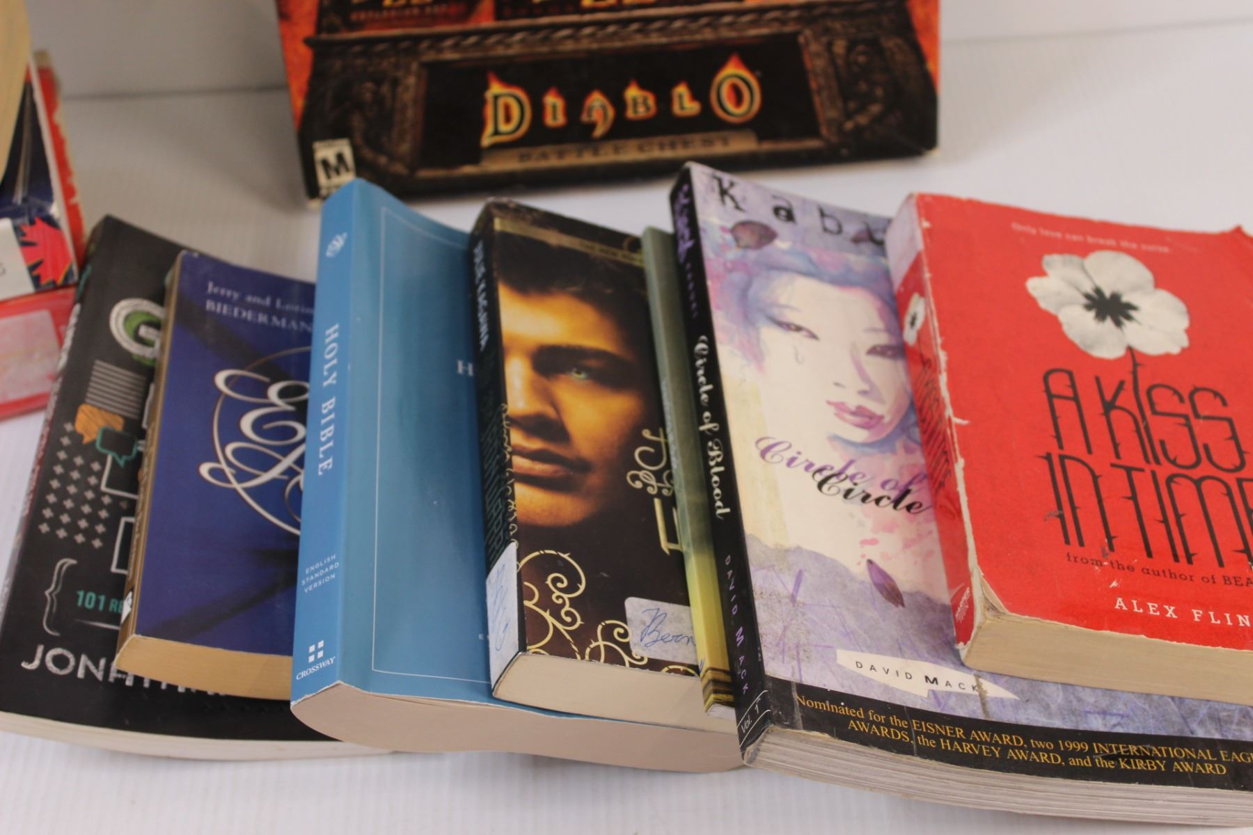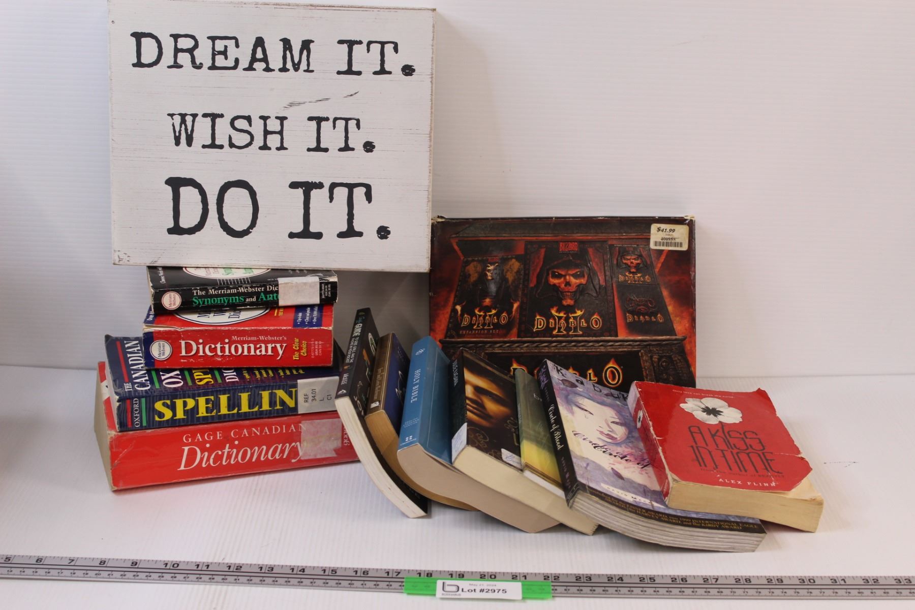 (13) Lot of Books Dictionaries; Bible; Sign; Diablo PC Game & Misc. Book Titles