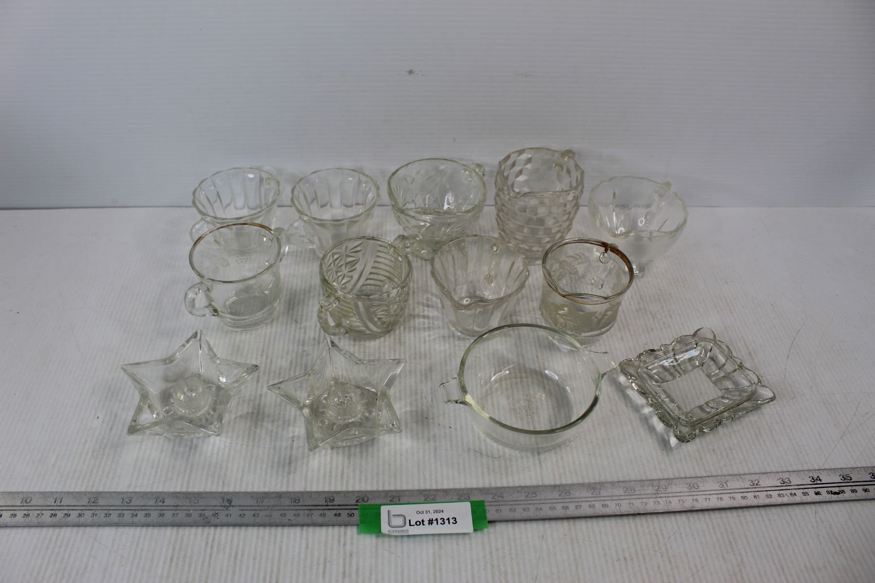(13) Various Clear Glass Cups/ Dishes, Pyrex, Misc.- Some Chips