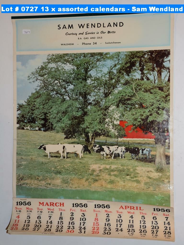 13 x assorted calendars - Sam Wendland 1956-1973