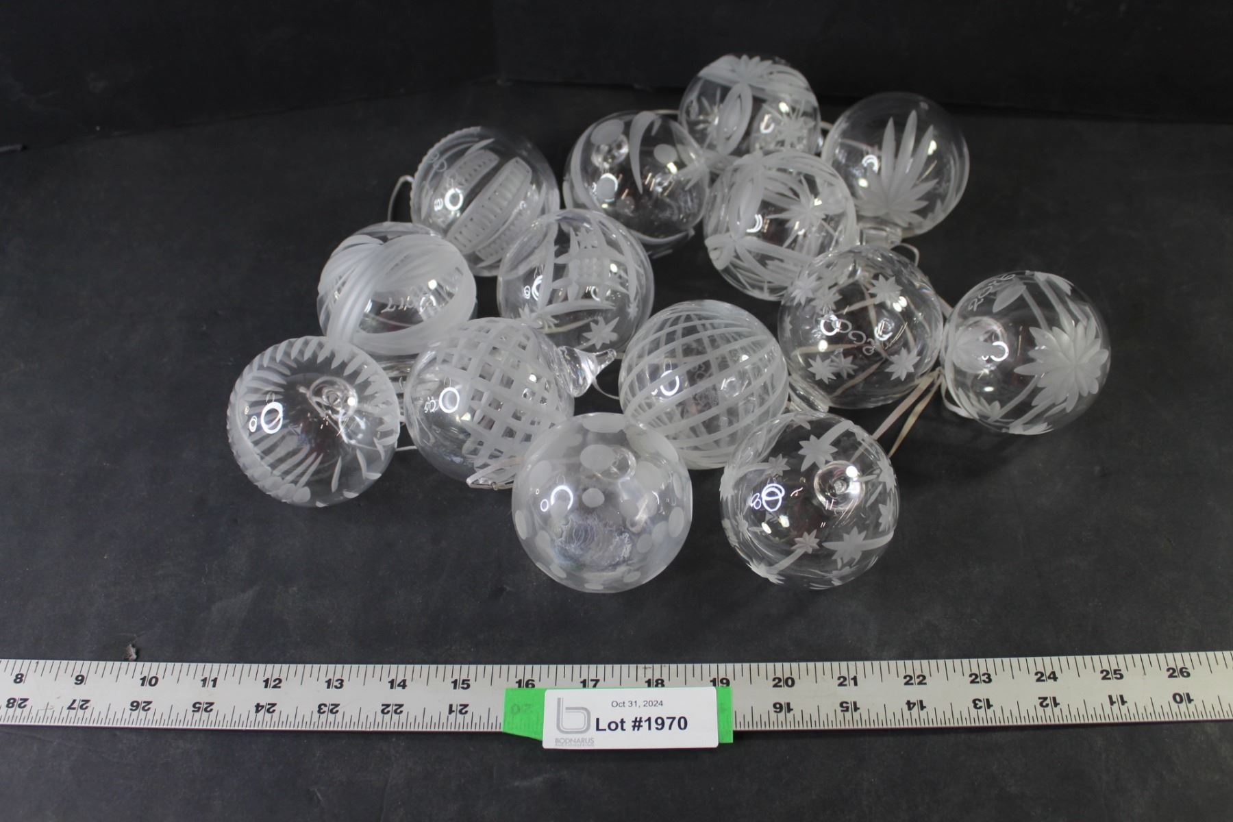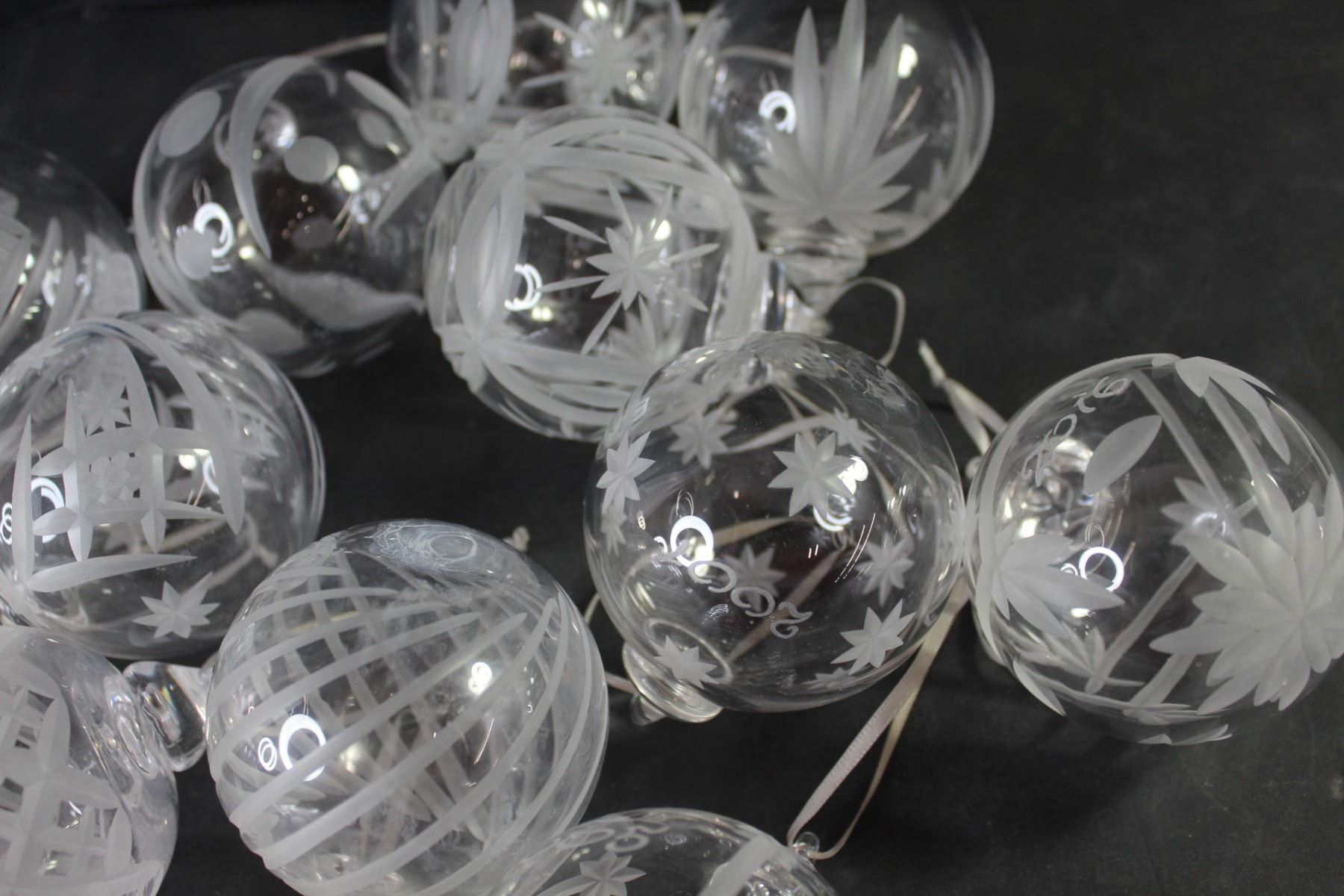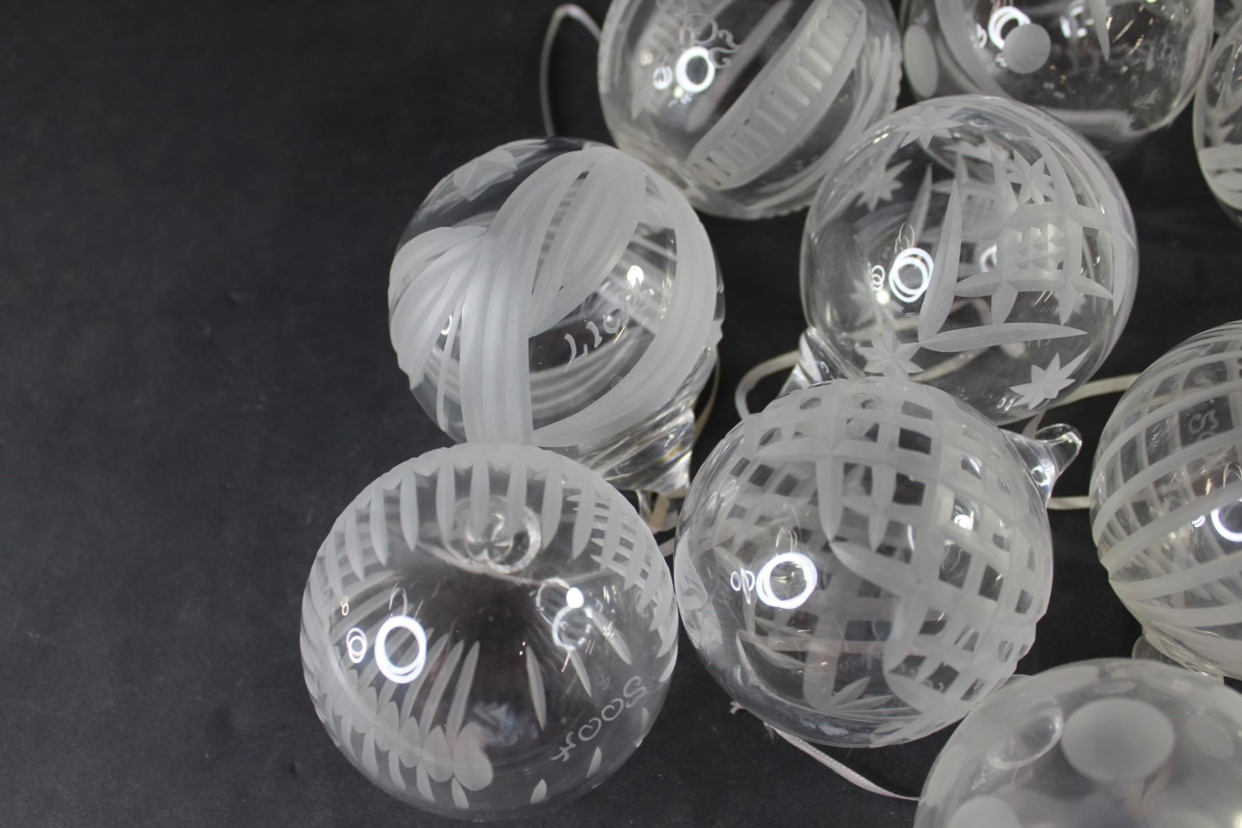 (14) Christmas Tree Hanging Ornaments (Etched Glass)