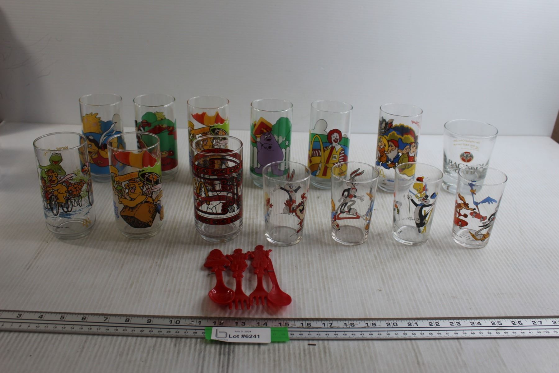 (14) Glasses - McDonald's Bacardi; (4) McDonald's Plastic Cutlery Pieces