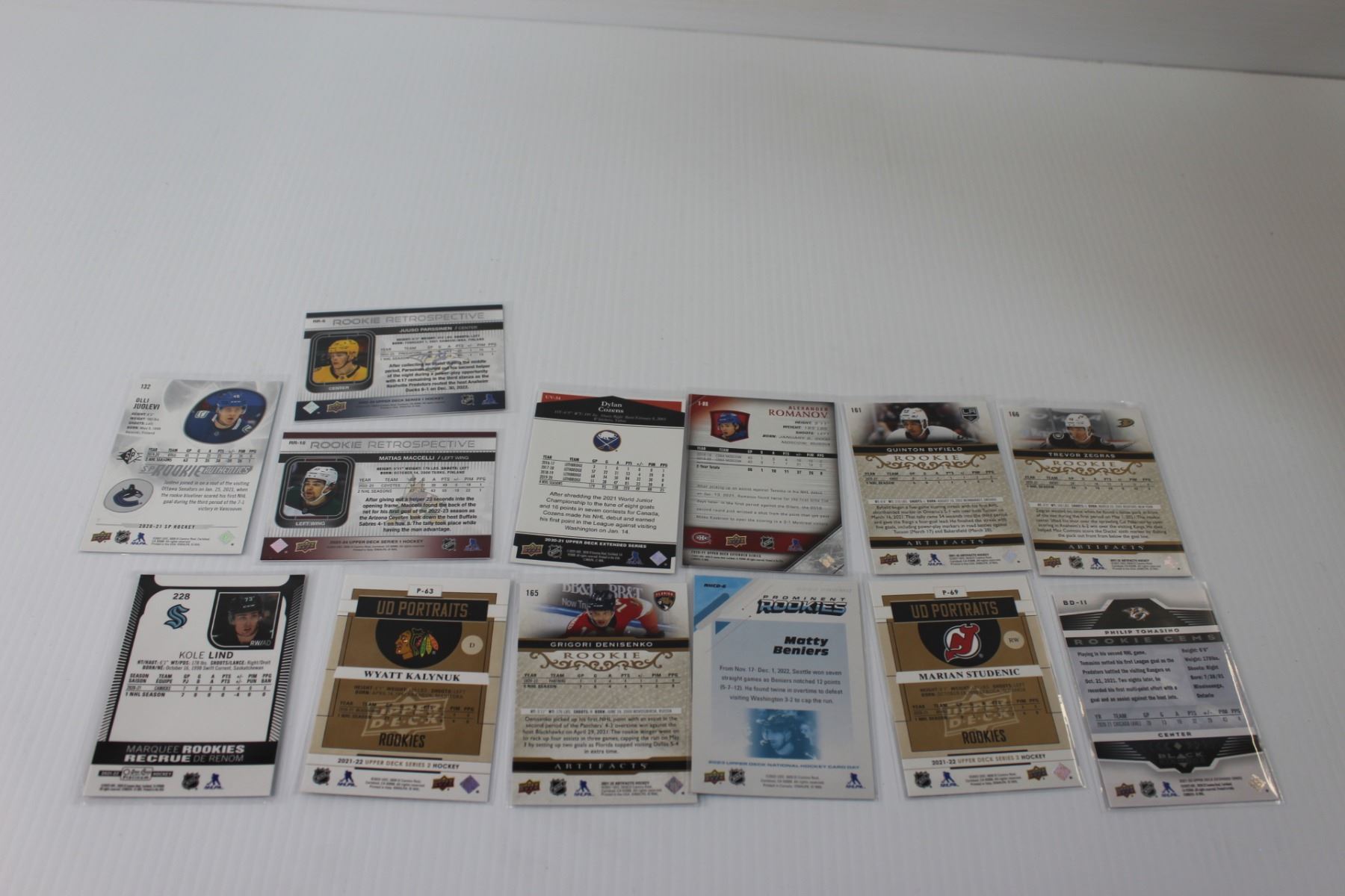 (14) Hockey Cards Various Players w/Rookie Editions: Lind, Byfield, Zegras, Romanov, Misc.