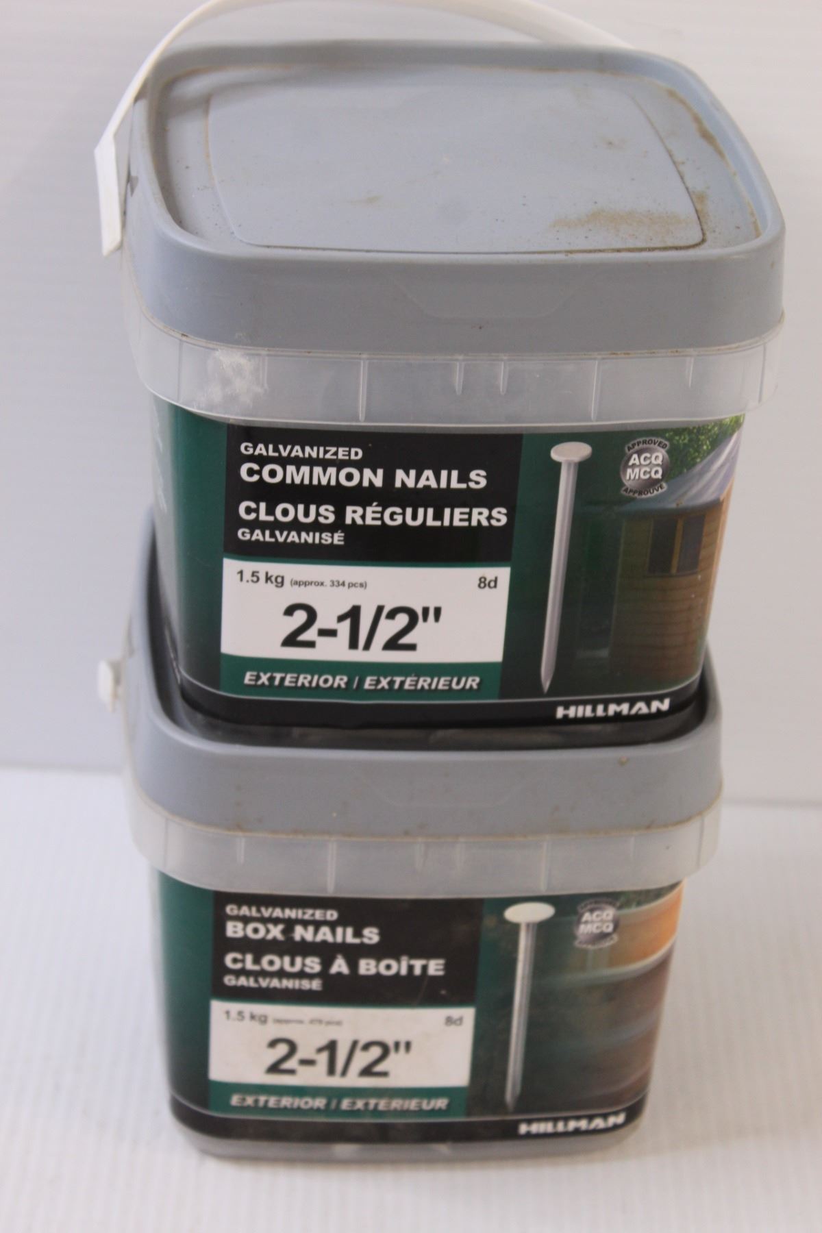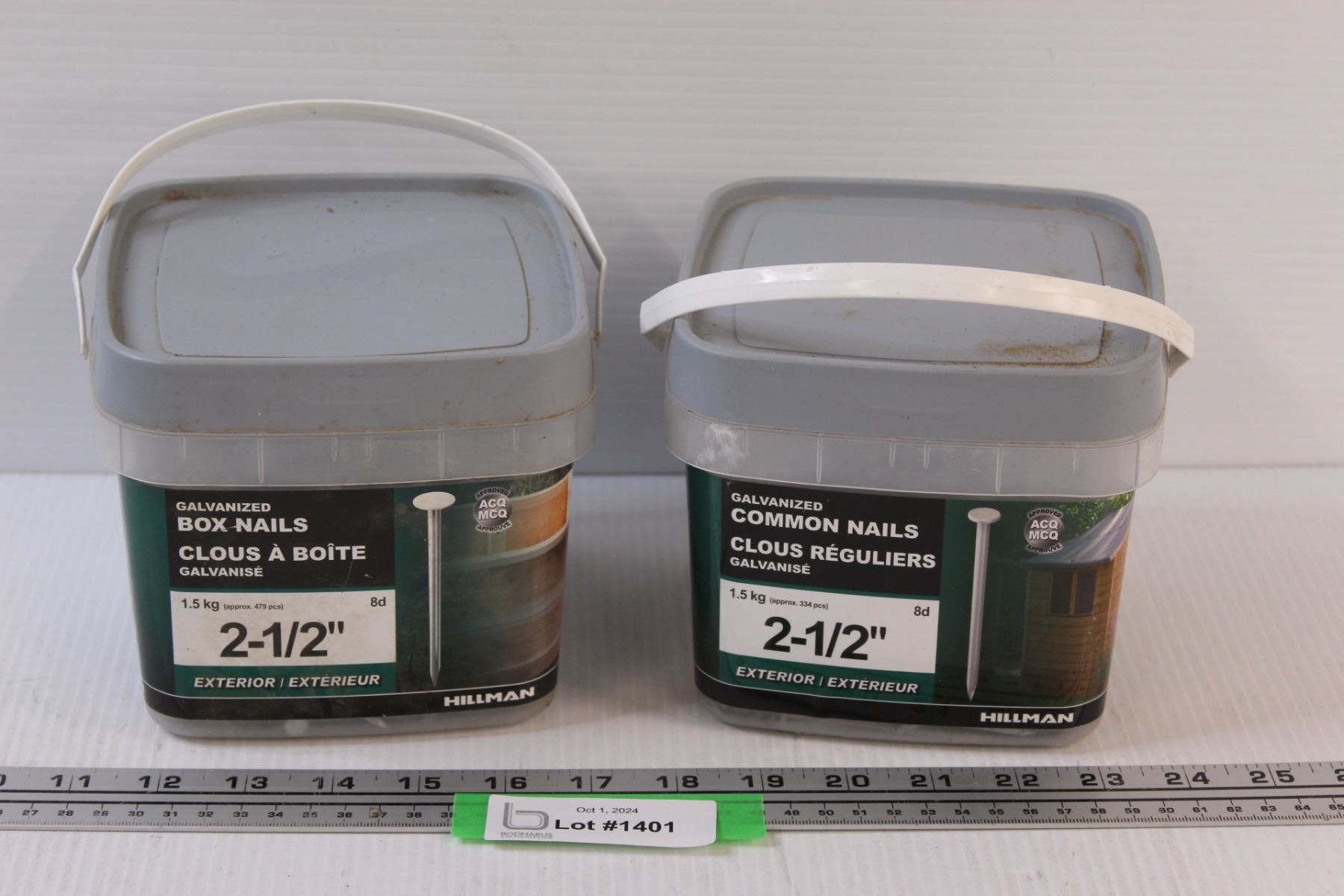 (2) Pails of 2.5" Nails (Box Nails & Common Nails) - Sealed