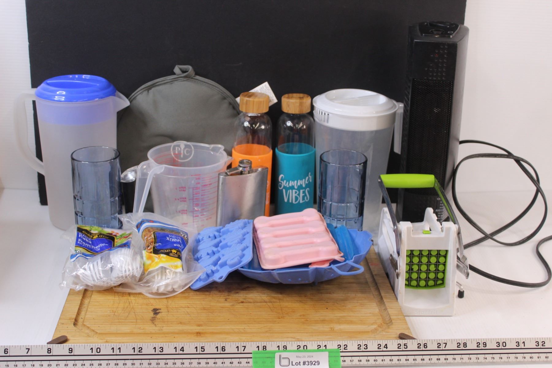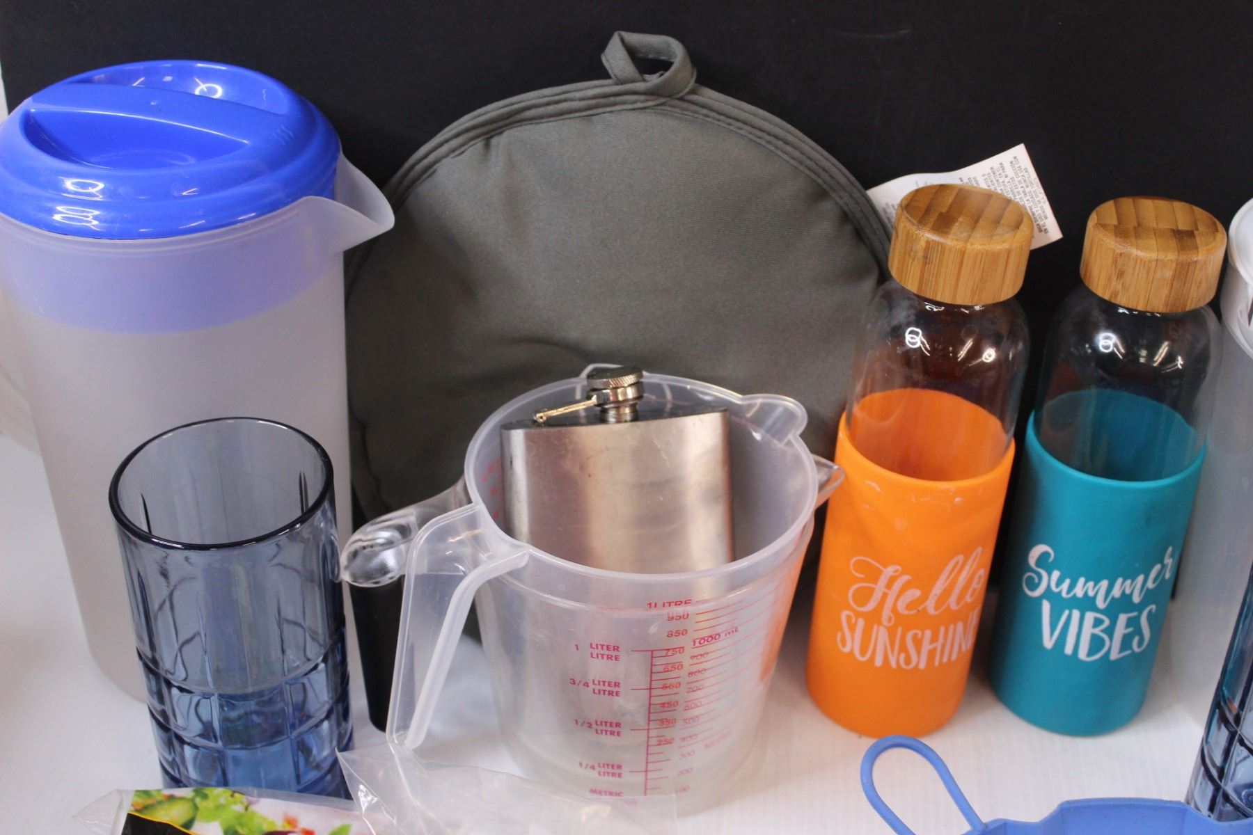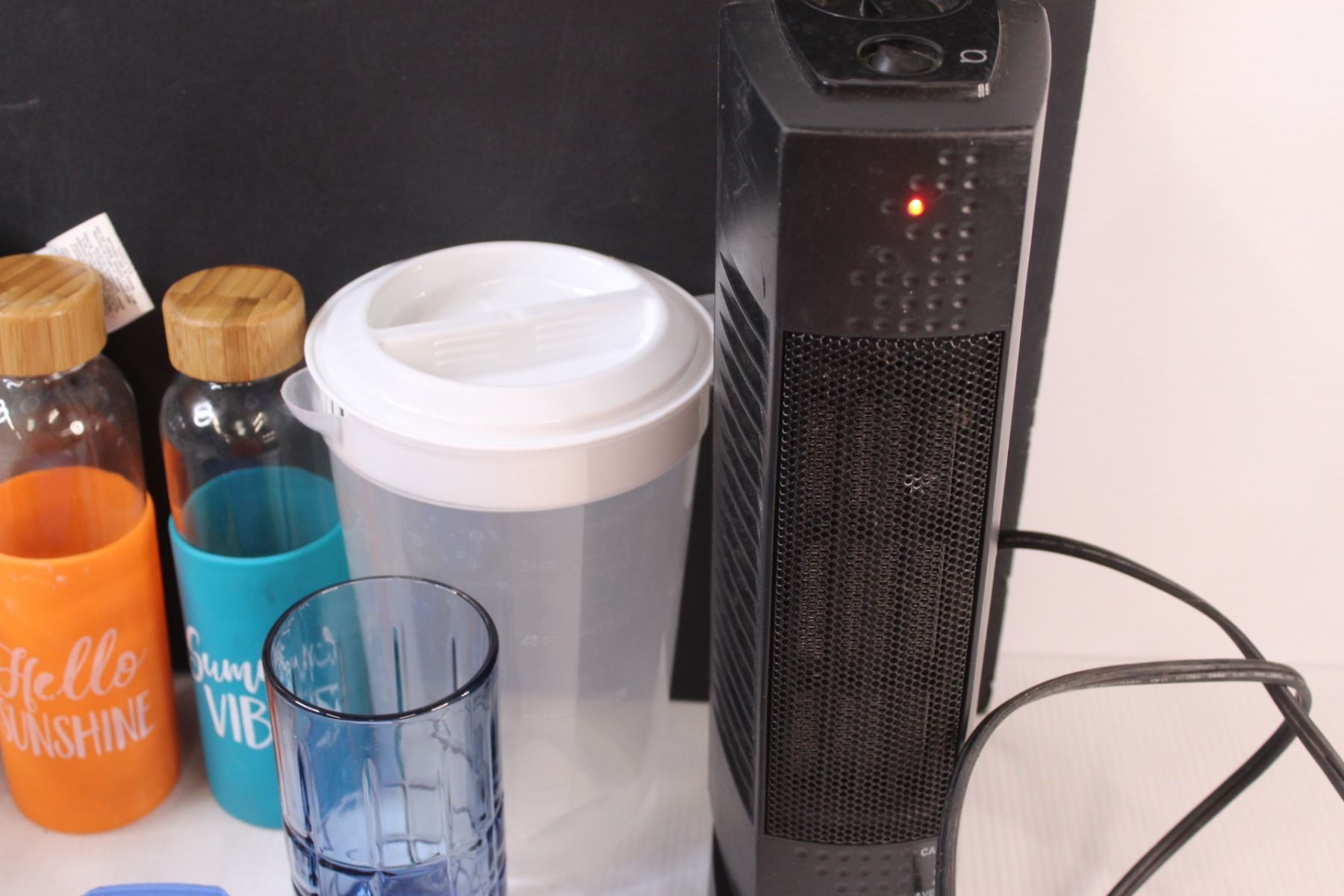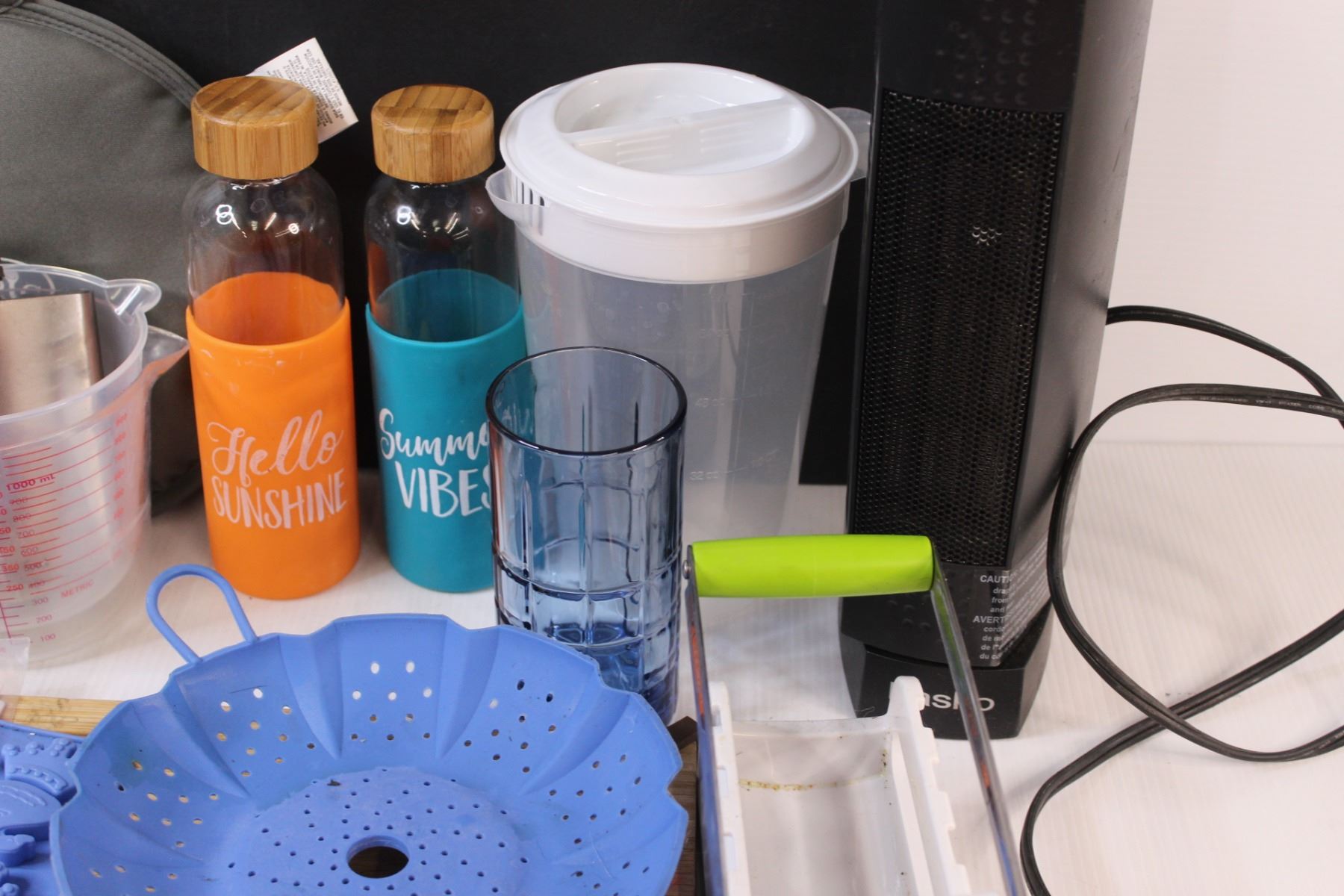 (15+) Kitchenware Misc. Lot: Plastic Juice Jugs; Measuring Sups; Water Bottles; Electric Heater - Works