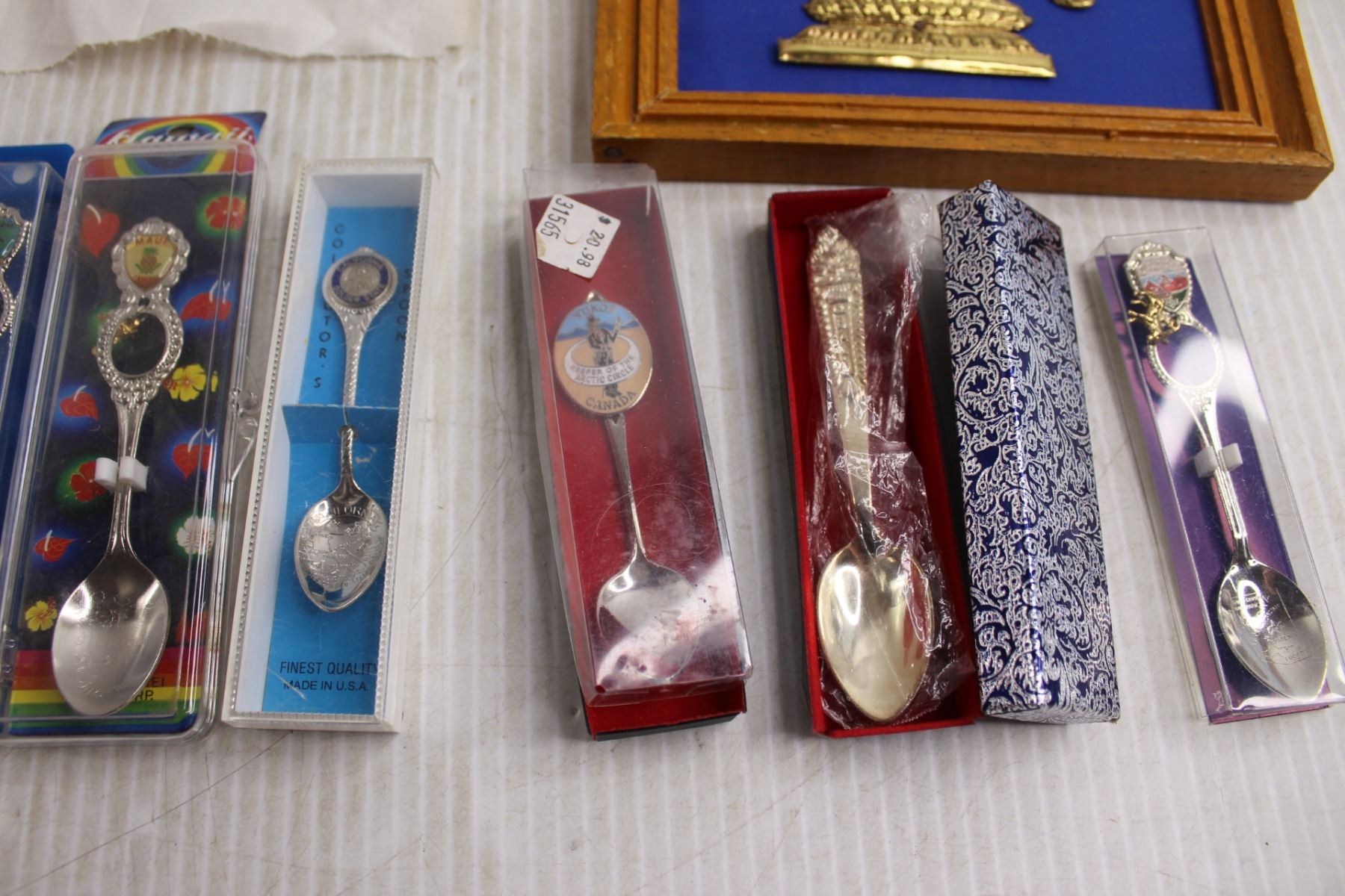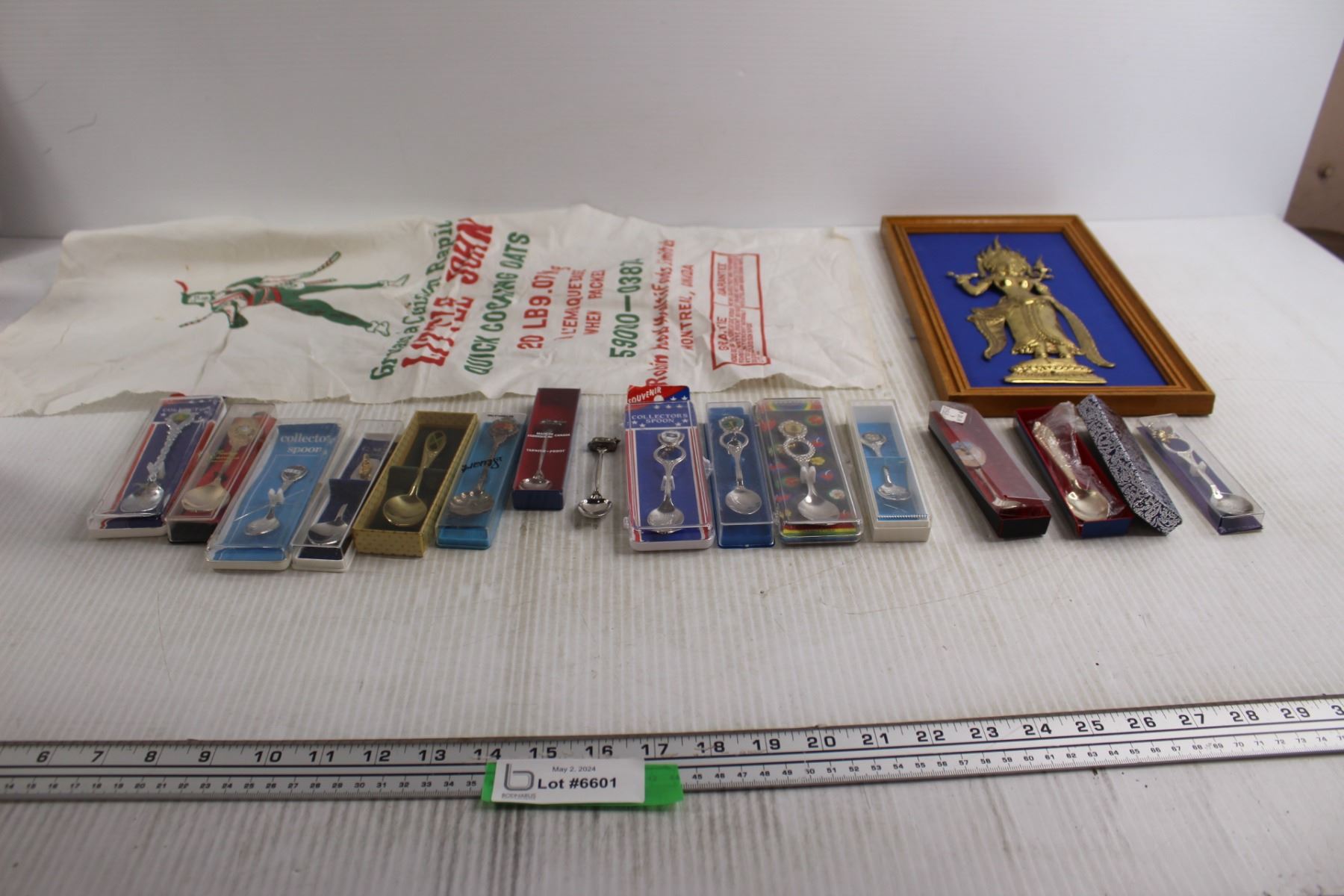 (15) Souvenir Spoons, Wall Hanging, Little John Oat Cloth