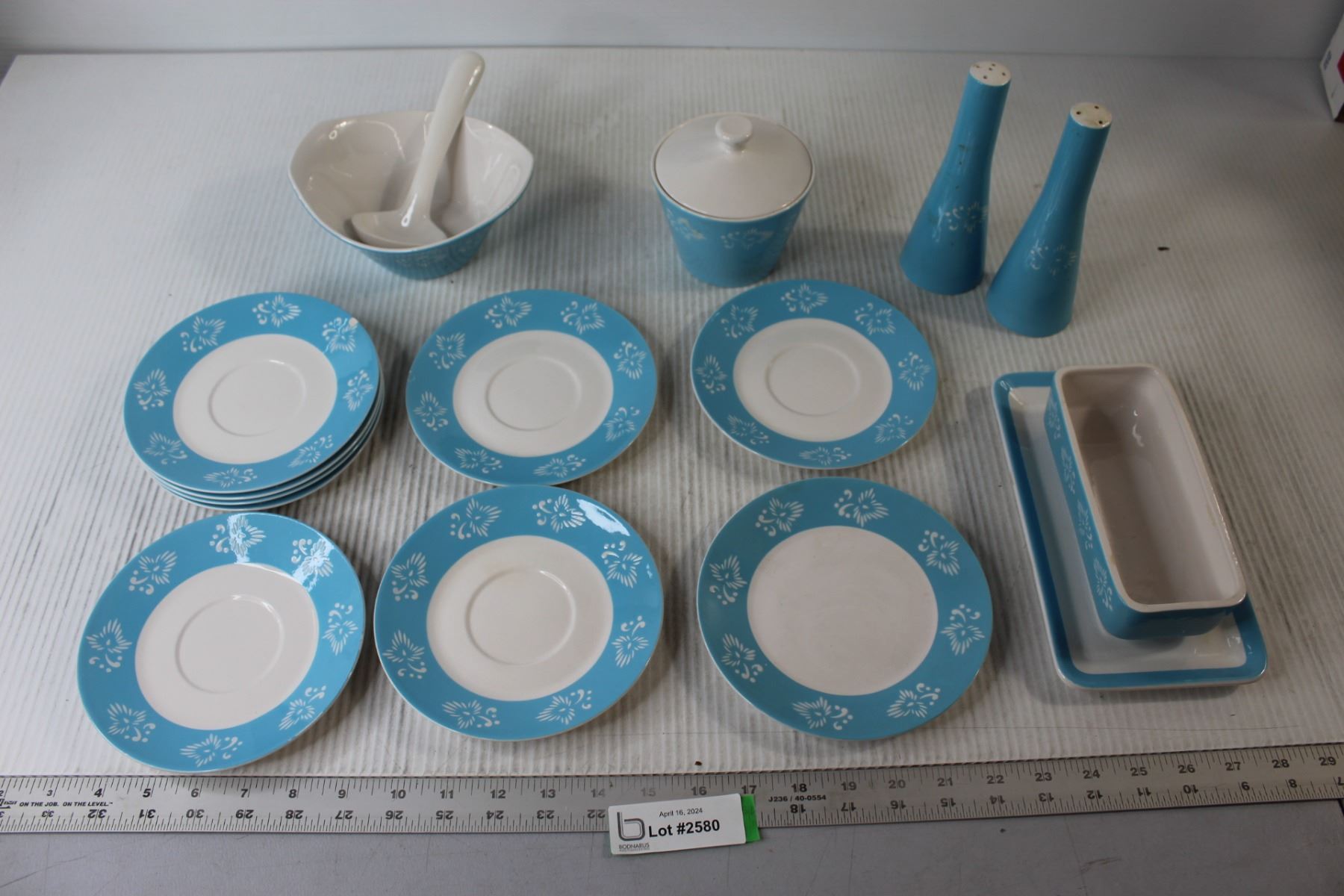 (15pcs) Empress Ironstone Ware Moderne-Blue (9 Plates, Salt and Pepper Shakers, etc.) (1 Plate Chipped)