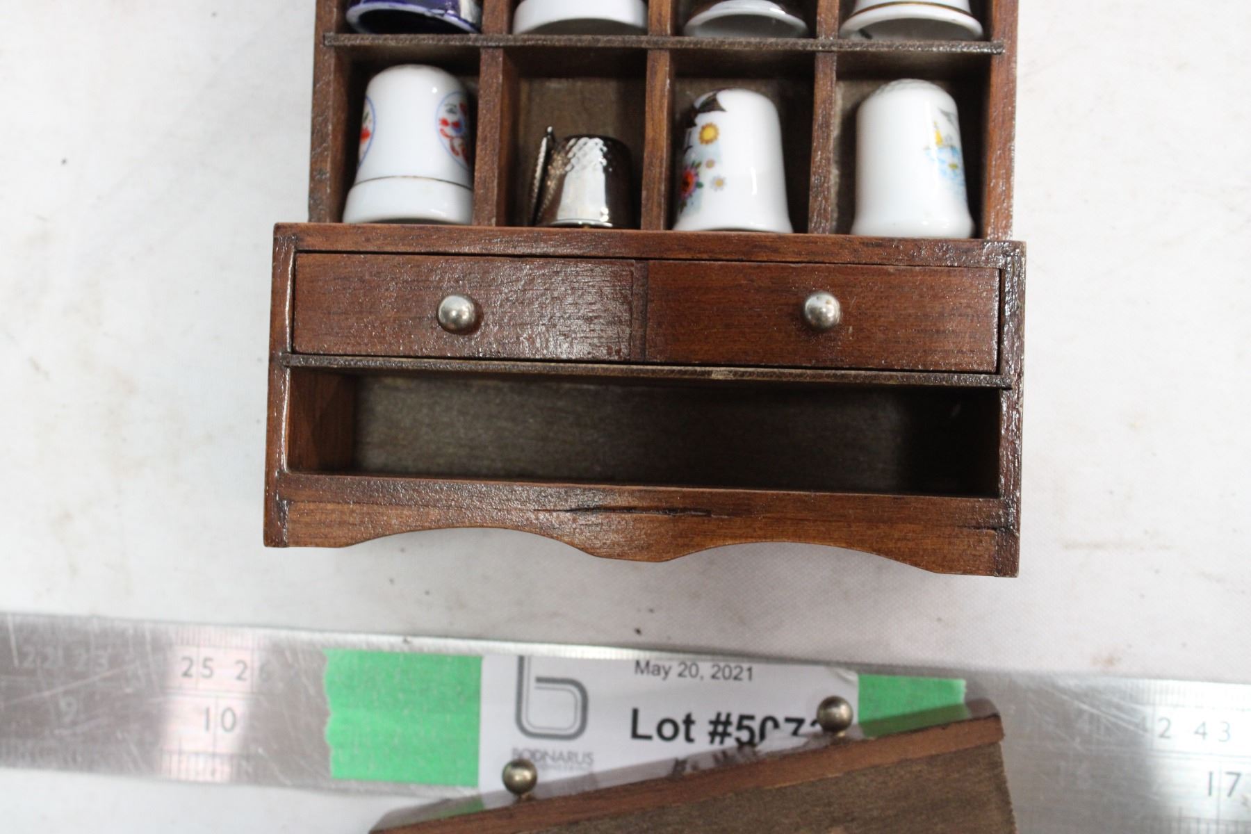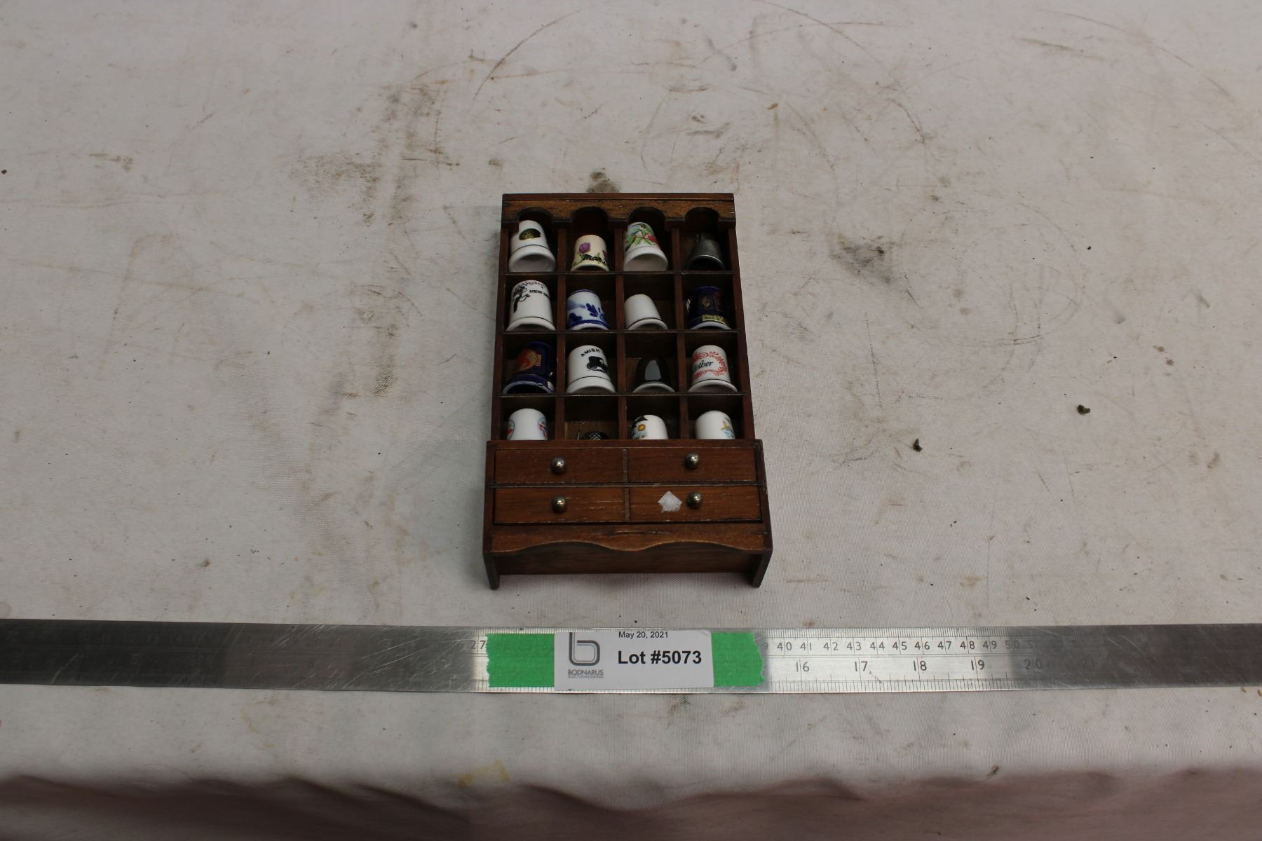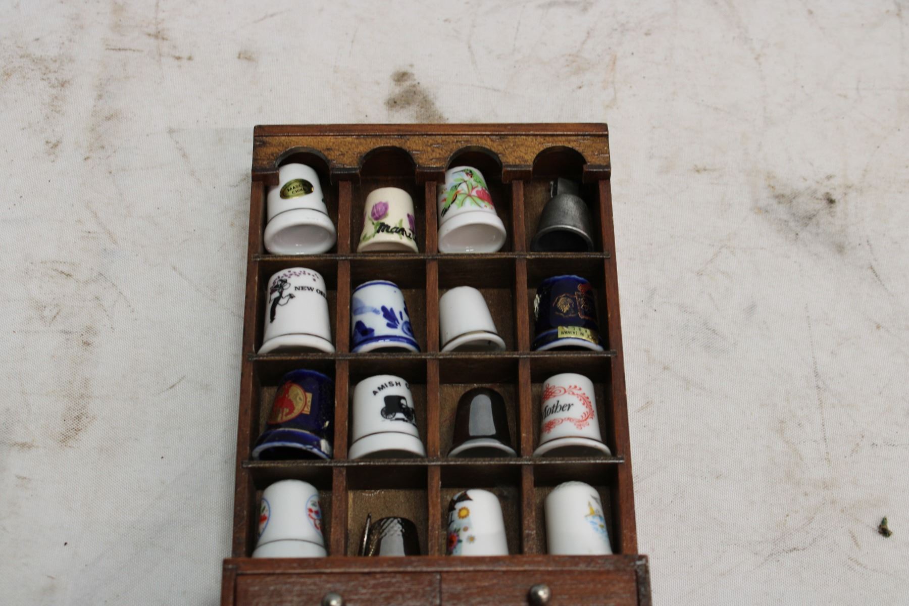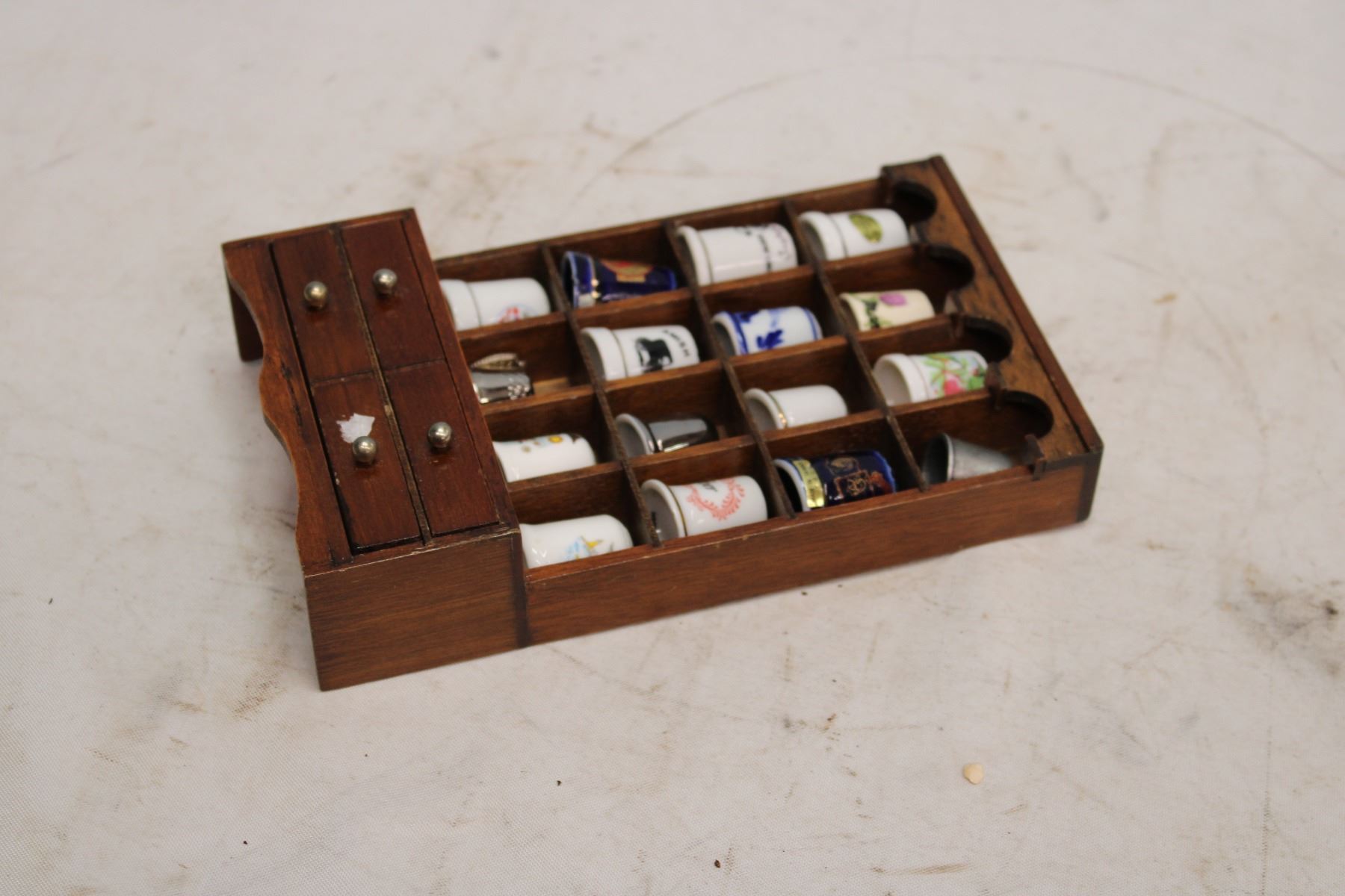 16 Decorative Thimbles In Cabinet 8" x 4.5" x 1 1/4"